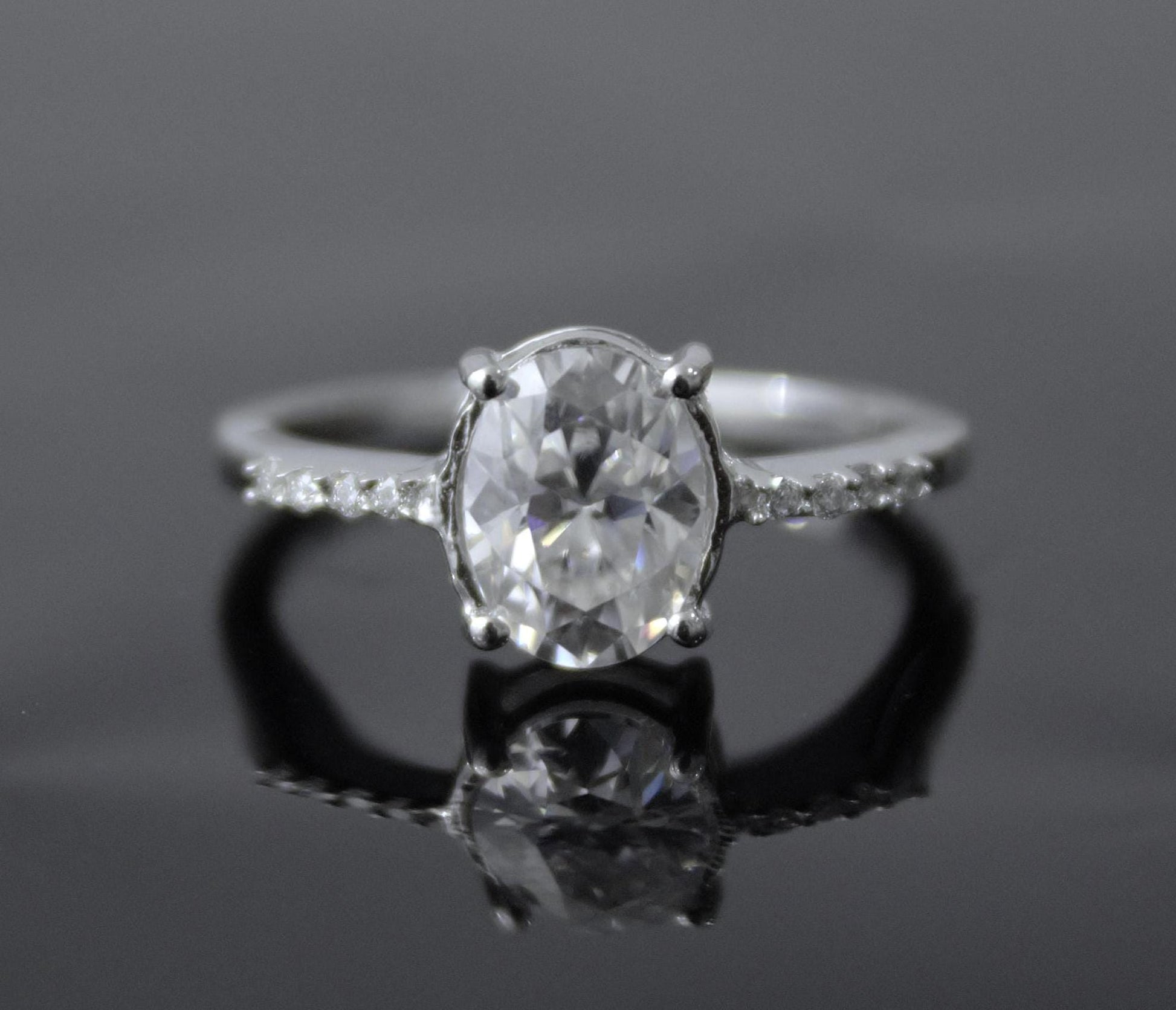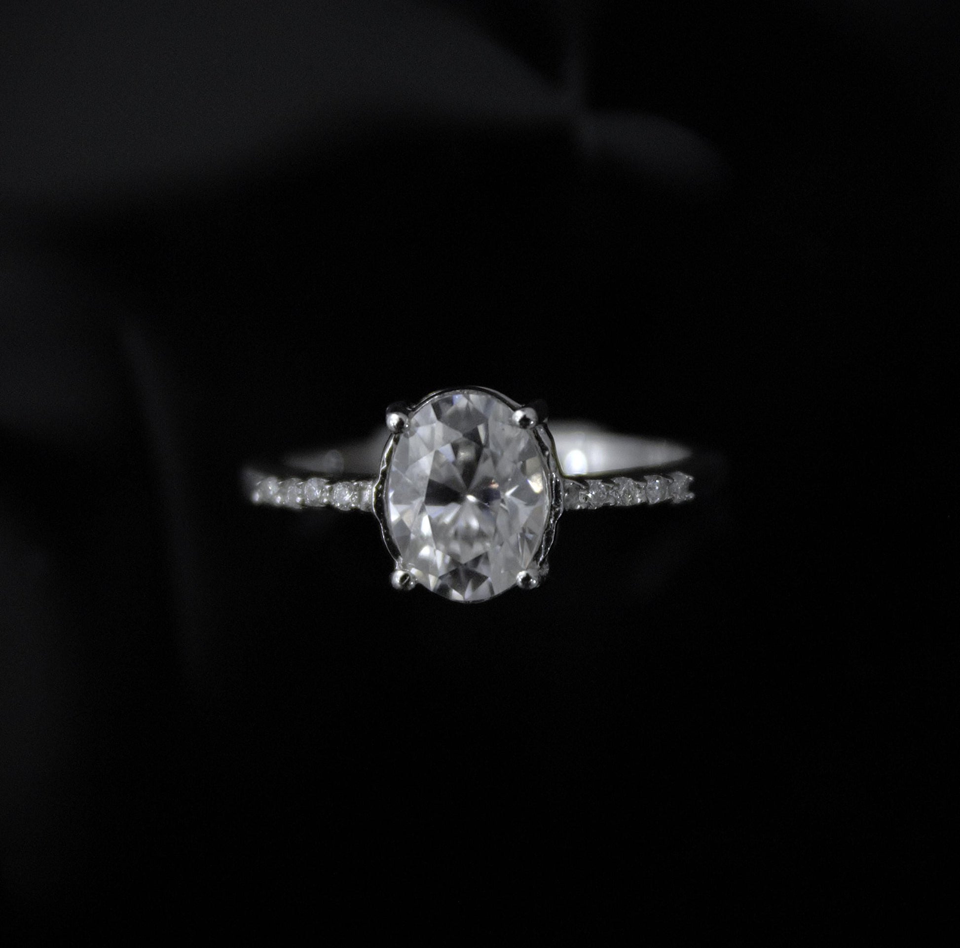 Oval Cut Moissanite Ring, Lightweight Silver Ring for Girlfriend, Minimalist Moissanite Ring, Daily Wear Silver Ring, Cluster Silver Ring