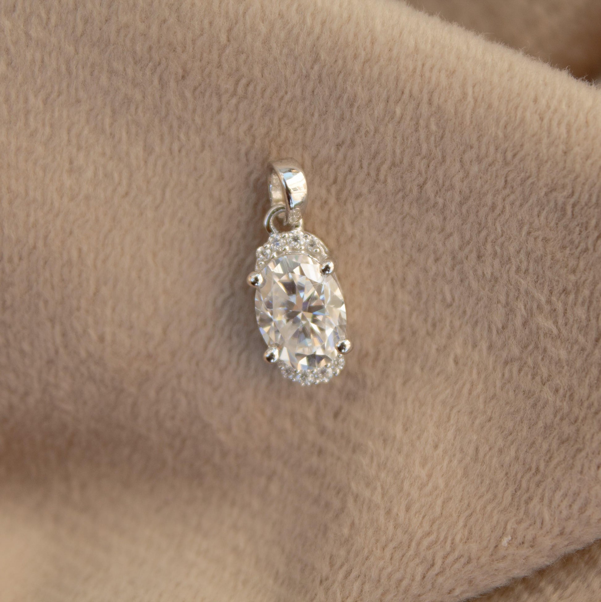 Oval Cut Moissanite Solitaire Pendant, Prong Set Minimalist Pendant, 925 Sterling Silver Dainty Jewelry for Her, Silver Charm Pendant Gift Product Details : ✥ Material ::- 925 Sterling Silver ✥ Gemstone ::- Moissanite ✥ Gross Weight ::- 1.144 Gm. (approx) ✥ Net Weight ::- 0.864 Gm. (approx) ✥ Stone Weight ::- 1.403 Ct. (approx) ✥ Stone Quantity ::- 9 ✥ Gemstone Shape ::- Oval, Round Customization:- We are able to make changes to this design according to your need or can make any other design you may desire, just send us photo of your favourite product and get it made in your desired materials. Care Instructions:- Wipe your jewelry with a soft cloth after every use Always store your jewelry in a flat box to avoid accidental scratches Benefits Of Wearing Moissanite Gemstone : Moissanite a diamond alternative encourages you to set greater goals and accomplish success and recognition in your industry of choice. Your personality becomes more endearing, likeable, and magnificent. Also Moissanite is diamond tester positive. Moissanite is believed to be a stone of the future and can help those who want to manifest their dreams and desires. It is said to enhance intuition and creativity and can help you tap into your inner power and potential. If you have any questions or need more information, Please feel free to contact us. For more amazing designs visit our shop https://www.etsy.com/shop/Gemethysts