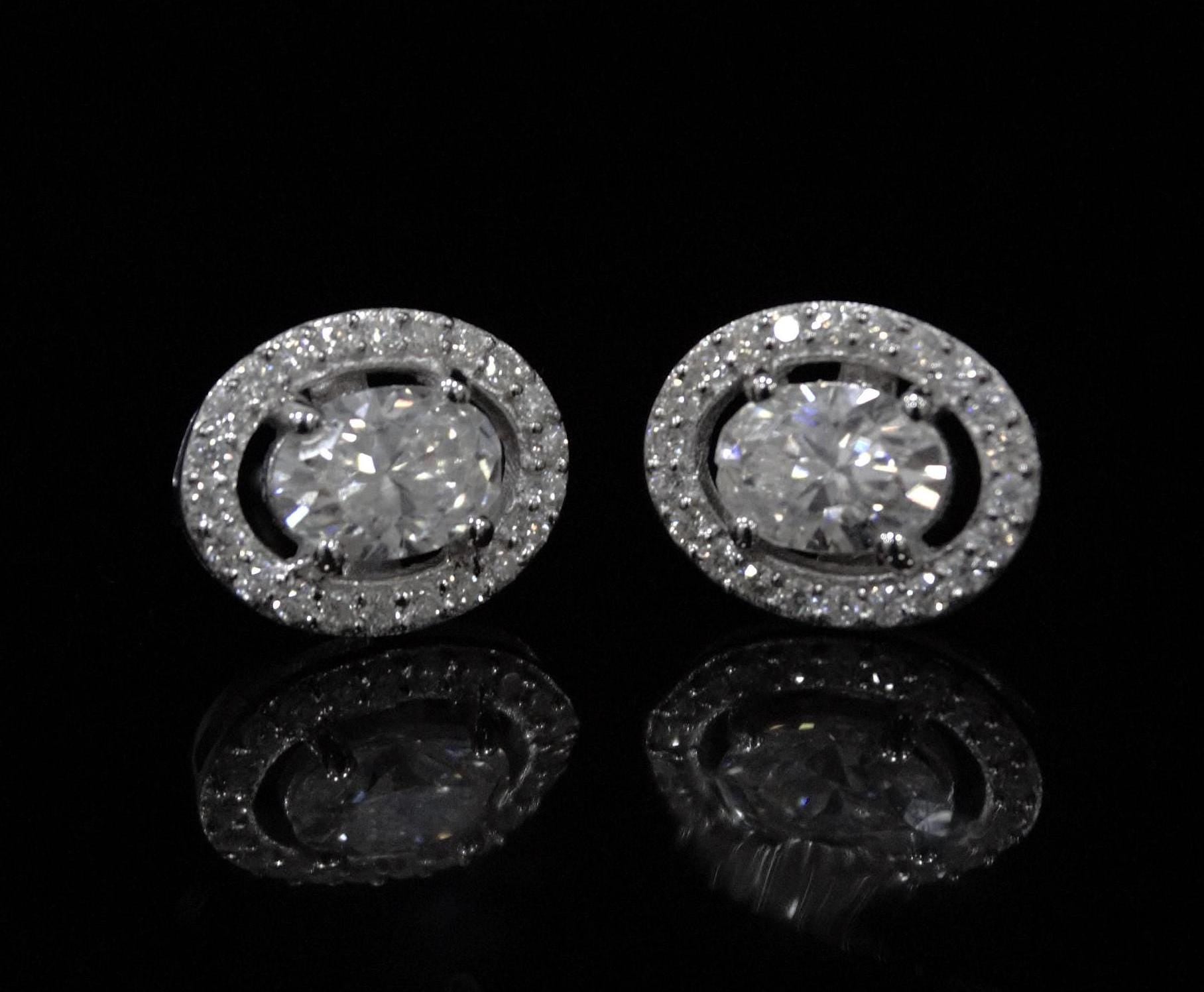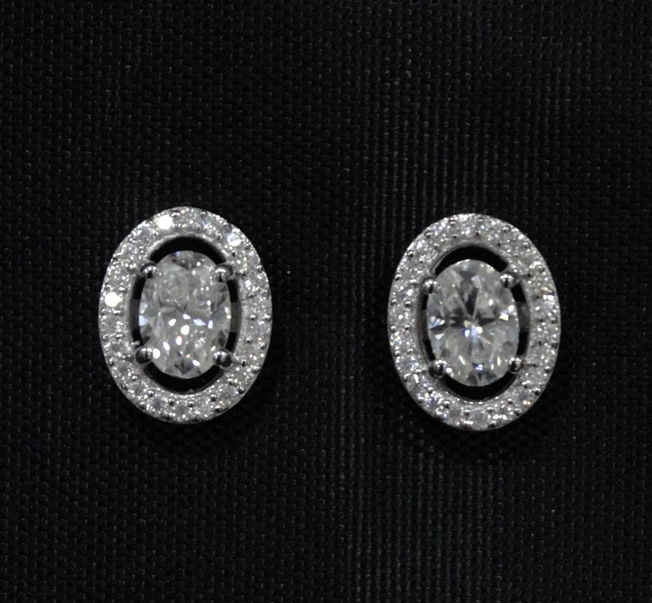 Oval Cut Moissanite Stud Earrings in 925 Sterling Silver, Tiny Stud Earrings for Bridesmaids, Solitaire Halo Stud Earrings, Gift for Women Product Details : ✥ Material ::- 925 Sterling Silver ✥ Gemstone ::- Moissanite ✥ Gross Weight ::- 2.808 Gm. (approx) ✥ Net Weight ::- 2.43 Gm. (approx) ✥ Stone Weight ::- 1.888 Ct. (approx) ✥ Stone Quantity ::- 46 ✥ Stud Length ::- 15 mm ✥ Gemstone Shape ::- Oval, Round Customization:- We are able to make changes to this design according to your need or can make any other design you may desire, just send us photo of your favourite product and get it made in your desired materials. Care Instructions:- Wipe your jewelry with a soft cloth after every use Always store your jewelry in a flat box to avoid accidental scratches ✥✥✥✥✥✥Benefits Of Wearing Moissanite Gemstone✥✥✥✥✥✥ Moissanite a diamond alternative encourages you to set greater goals and accomplish success and recognition in your industry of choice. Your personality becomes more endearing, likeable, and magnificent. Also Moissanite is diamond tester positive. Moissanite is believed to be a stone of the future and can help those who want to manifest their dreams and desires. It is said to enhance intuition and creativity and can help you tap into your inner power and potential. If you have any questions or need more information, Please feel free to contact us. For more amazing designs visit our shop https://www.etsy.com/shop/Gemethysts