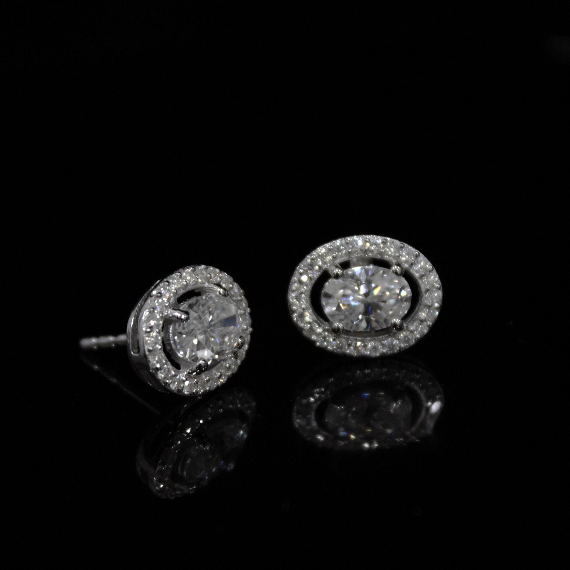 Oval Cut Moissanite Stud Earrings in 925 Sterling Silver, Tiny Stud Earrings for Bridesmaids, Solitaire Halo Stud Earrings, Gift for Women