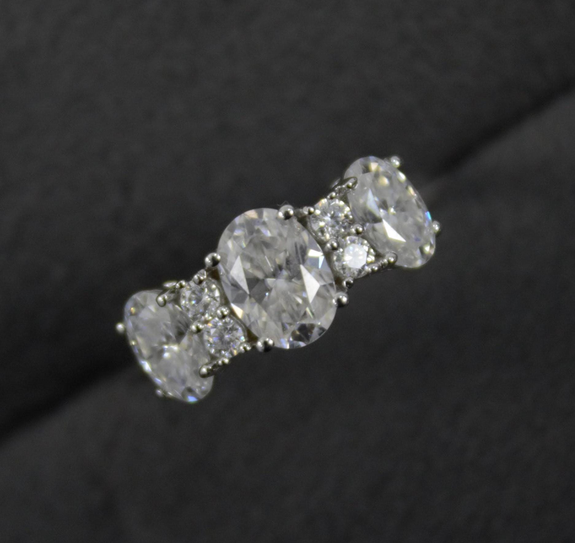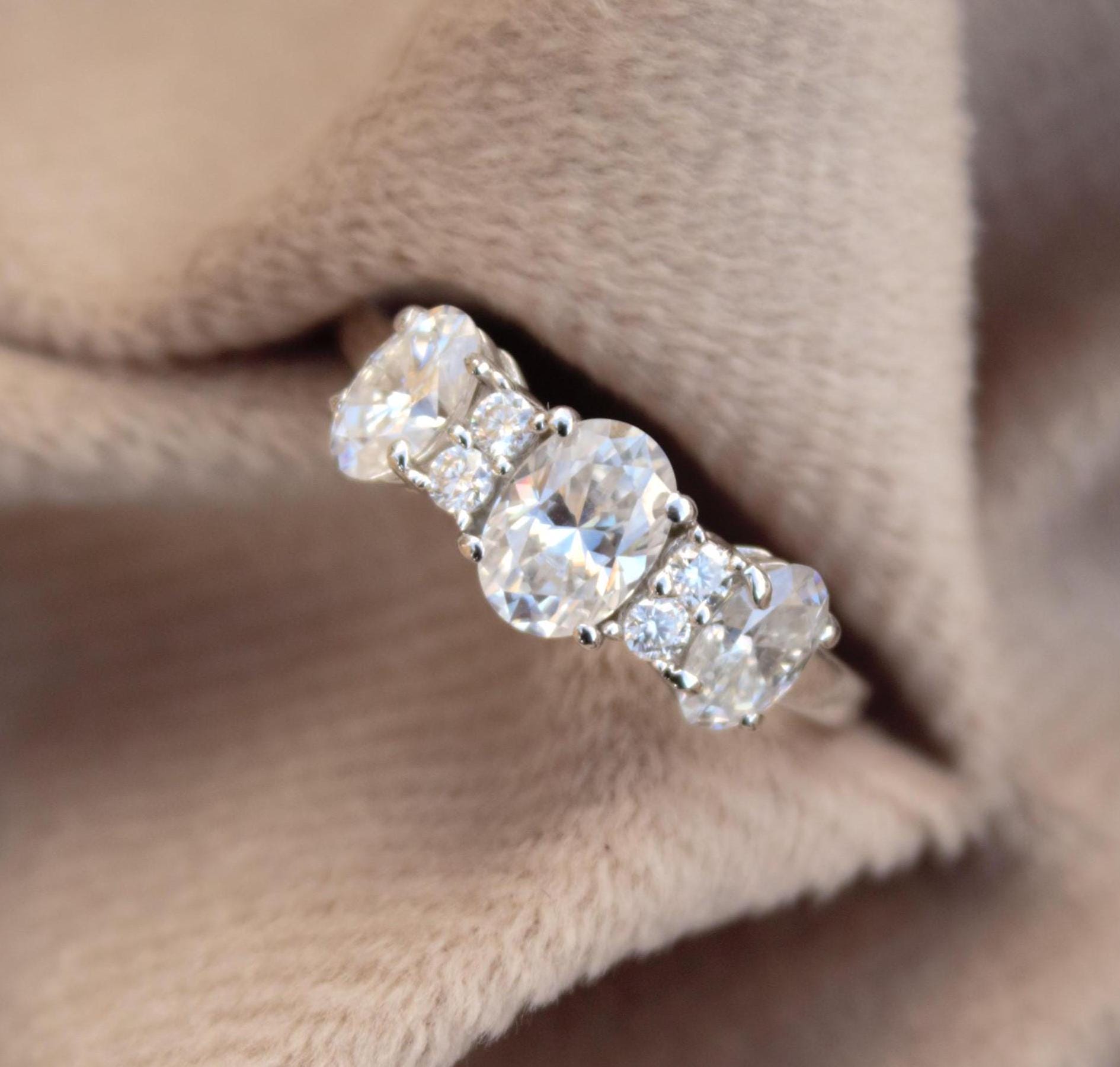Oval Cut Solid Silver Ring, White Moissanite Jewelry, 925 Sterling Silver Moissanite Ring, Statement Travel Jewelry, Solitaire Ring for Her Product Details : ✥ Material ::- 925 Sterling Silver ✥ Gemstone ::- Moissanite ✥ Gross Weight ::- 2.015 Gm. (Approx) ✥ Net Weight ::- 1.635 Gm. (Approx) ✥ Stone Weight ::- 1.894 Ct. (Approx) ✥ Stone Quantity ::- 7 ✥ Gemstone Shape ::- Oval, Round Customization:- We are able to make changes to this design according to your need or can make any other design you may desire, just send us photo of your favourite product and get it made in your desired materials. Care Instructions:- Wipe your jewelry with a soft cloth after every use Always store your jewelry in a flat box to avoid accidental scratches Benefits Of Wearing Moissanite Gemstone :- Moissanite a diamond alternative encourages you to set greater goals and accomplish success and recognition in your industry of choice. Your personality becomes more endearing, likeable, and magnificent. Also Moissanite is diamond tester positive. Moissanite is believed to be a stone of the future and can help those who want to manifest their dreams and desires. It is said to enhance intuition and creativity and can help you tap into your inner power and potential. If you have any questions or need more information, Please feel free to contact us. For more amazing designs visit our shop https://www.etsy.com/shop/Gemethysts