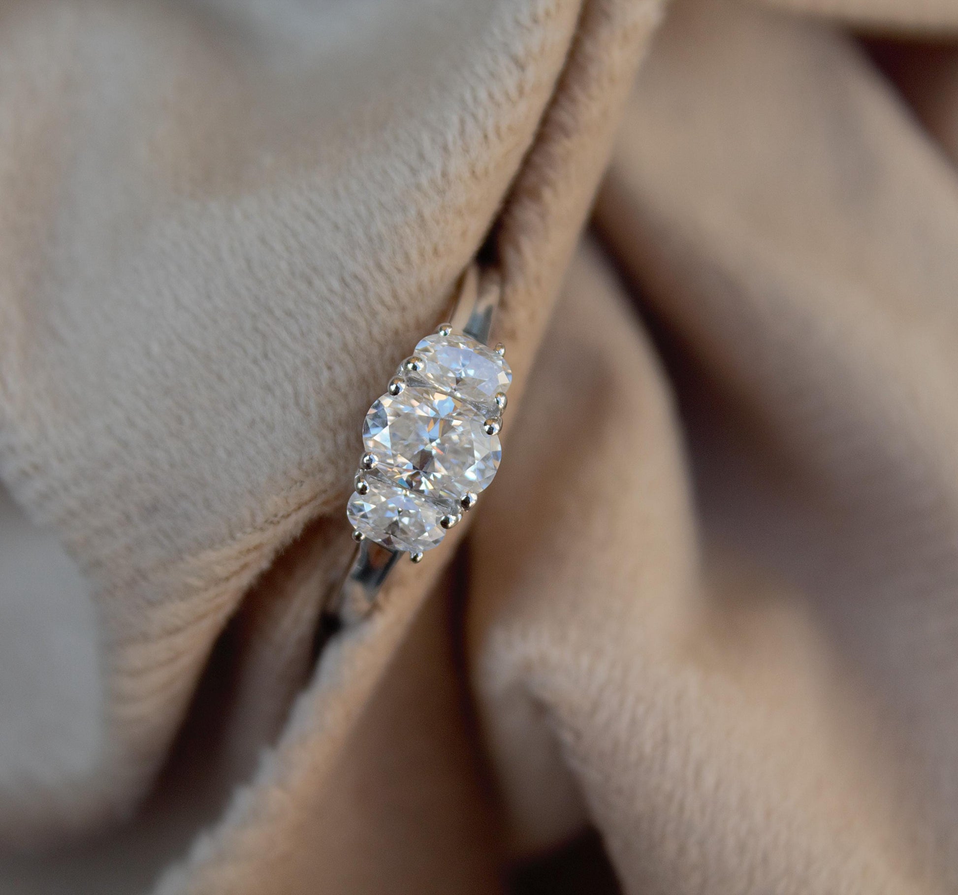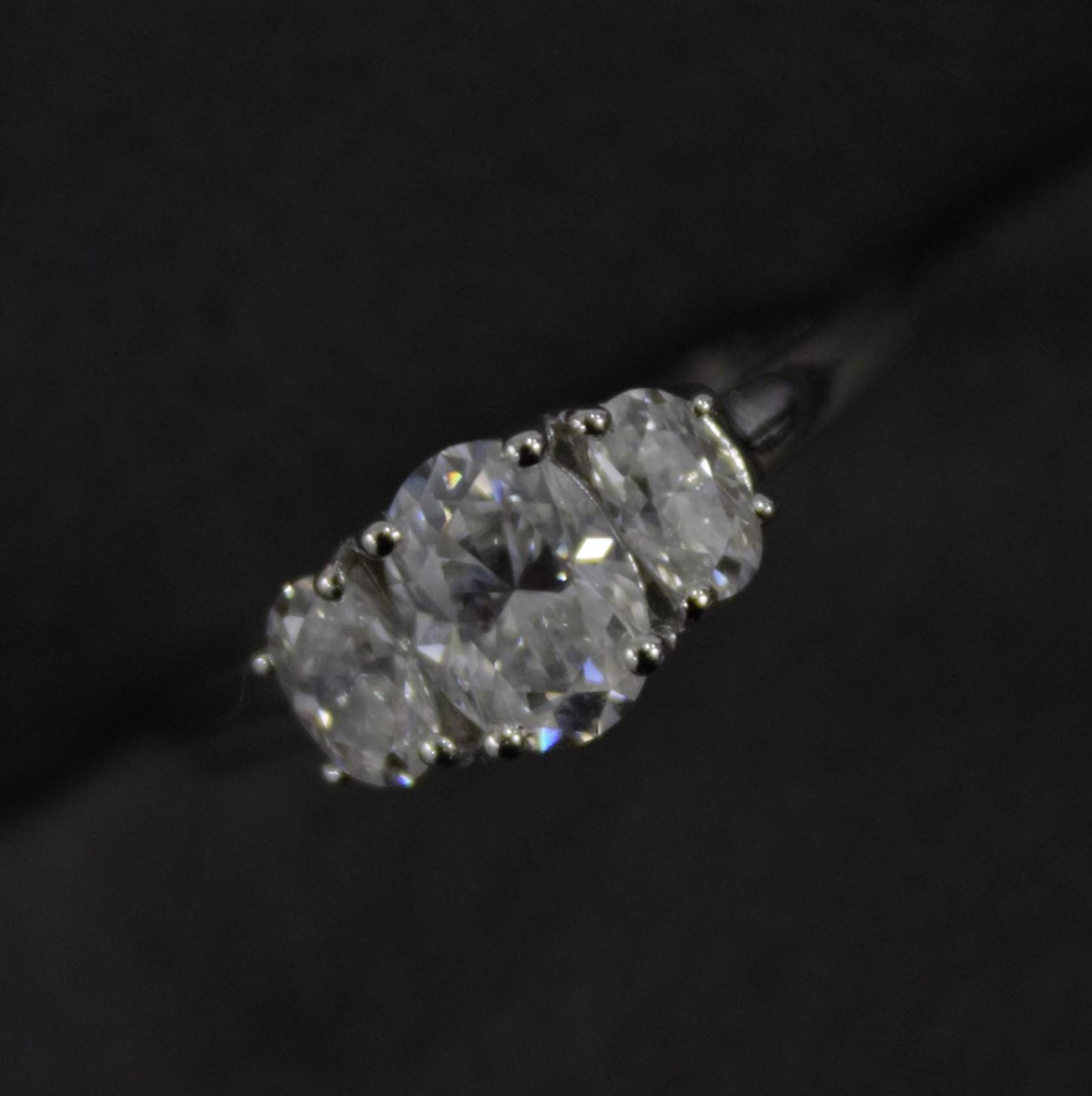 Oval Cut Stone Statement Ring for Her, White Moissanite Three Stone Ring, Oval Shape Ring, Anniversary Ring for Wife, Moissanite Jewelry Product Details : ✥ Material ::- 925 Sterling Silver ✥ Gemstone ::- Moissanite ✥ Gross Weight ::- 2.255 Gm. (Approx) ✥ Net Weight ::- 1.895 Gm. (Approx) ✥ Stone Weight ::- 1.803 Ct. (Approx) ✥ Stone Quantity ::- 3 ✥ Gemstone Shape ::- Oval Customization:- We are able to make changes to this design according to your need or can make any other design you may desire, just send us photo of your favourite product and get it made in your desired materials. Care Instructions:- Wipe your jewelry with a soft cloth after every use Always store your jewelry in a flat box to avoid accidental scratches Benefits Of Wearing Moissanite Gemstone :- Moissanite a diamond alternative encourages you to set greater goals and accomplish success and recognition in your industry of choice. Your personality becomes more endearing, likeable, and magnificent. Also Moissanite is diamond tester positive. Moissanite is believed to be a stone of the future and can help those who want to manifest their dreams and desires. It is said to enhance intuition and creativity and can help you tap into your inner power and potential. If you have any questions or need more information, Please feel free to contact us. For more amazing designs visit our shop https://www.etsy.com/shop/Gemethysts