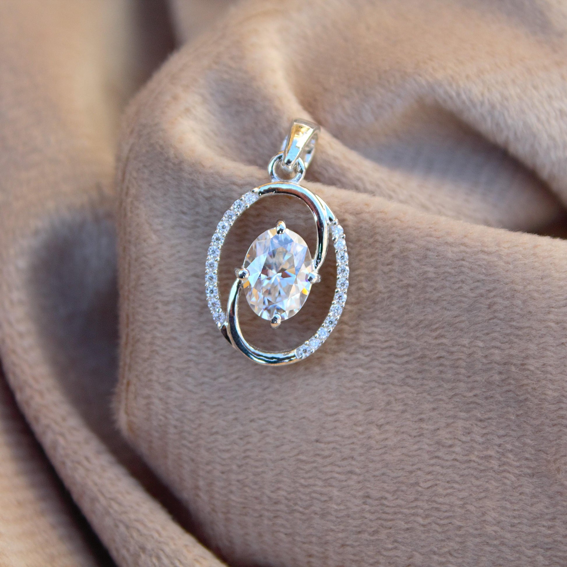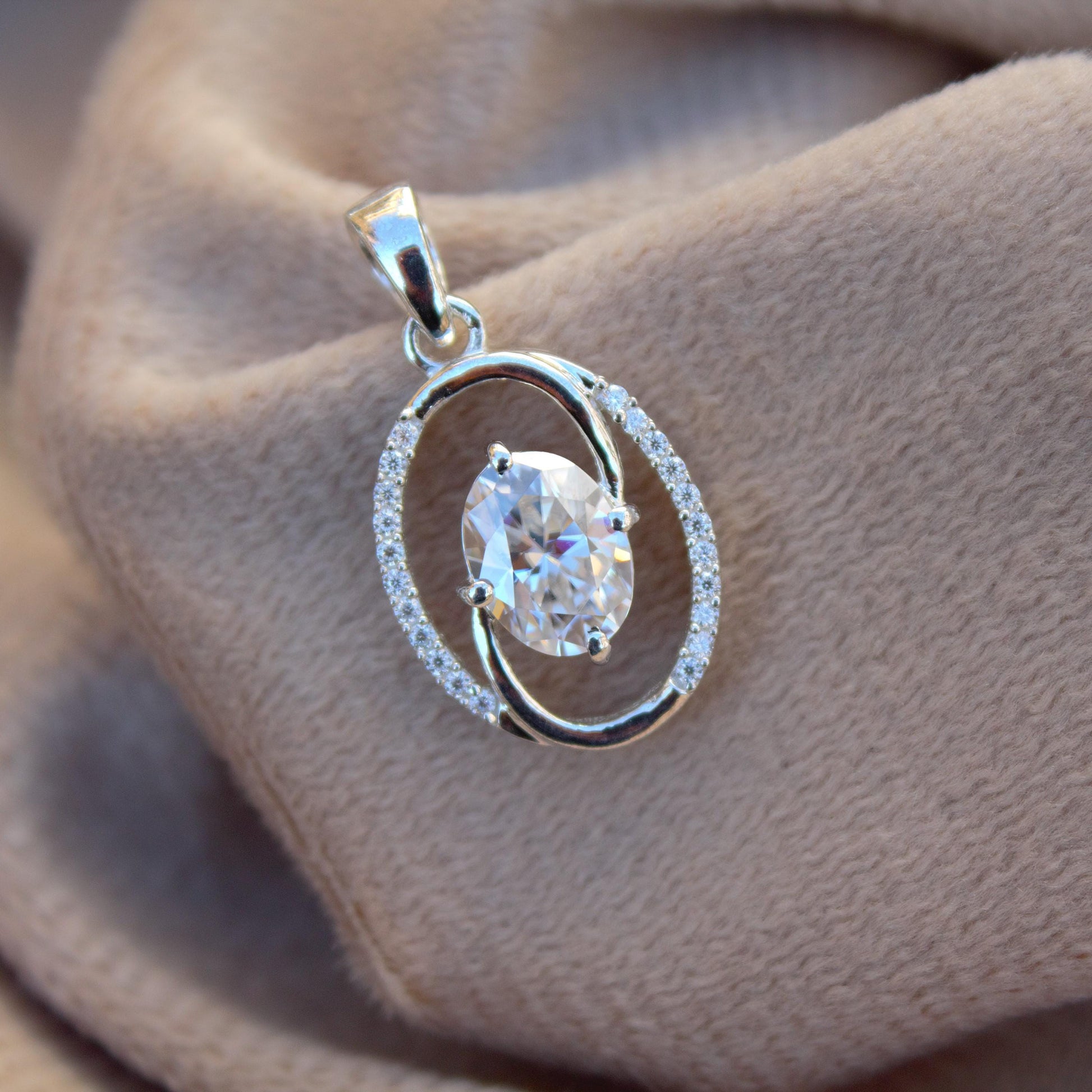 Oval Moissanite 925 Sterling Silver Charm Pendant, Oval Cut Minimalist Pendant, Silver Jewelry for Women, Statement Silver Pendant for Chain Product Details : ✥ Material ::- 925 Sterling Silver ✥ Gemstone ::- Moissanite ✥ Gross Weight ::- 1.948 Gm.(approx) ✥ Net Weight ::- 1.647 Gm.(approx) ✥ Stone Weight ::- 1.51 Ct.(approx) ✥ Stone Quantity ::- 19 ✥ Gemstone Shape ::- Oval, Round Customization:- We are able to make changes to this design according to your need or can make any other design you may desire, just send us photo of your favorite product and get it made in your desired materials. Care Instructions:- Wipe your jewelry with a soft cloth after every use Always store your jewelry in a flat box to avoid accidental scratches Benefits Of Wearing Moissanite Gemstone :- Moissanite a diamond alternative encourages you to set greater goals and accomplish success and recognition in your industry of choice. Your personality becomes more endearing, likeable, and magnificent. Also Moissanite is diamond tester positive. Moissanite is believed to be a stone of the future and can help those who want to manifest their dreams and desires. It is said to enhance intuition and creativity and can help you tap into your inner power and potential. If you have any questions or need more information, Please feel free to contact us. For more amazing designs visit our shop https://www.etsy.com/shop/Gemethysts