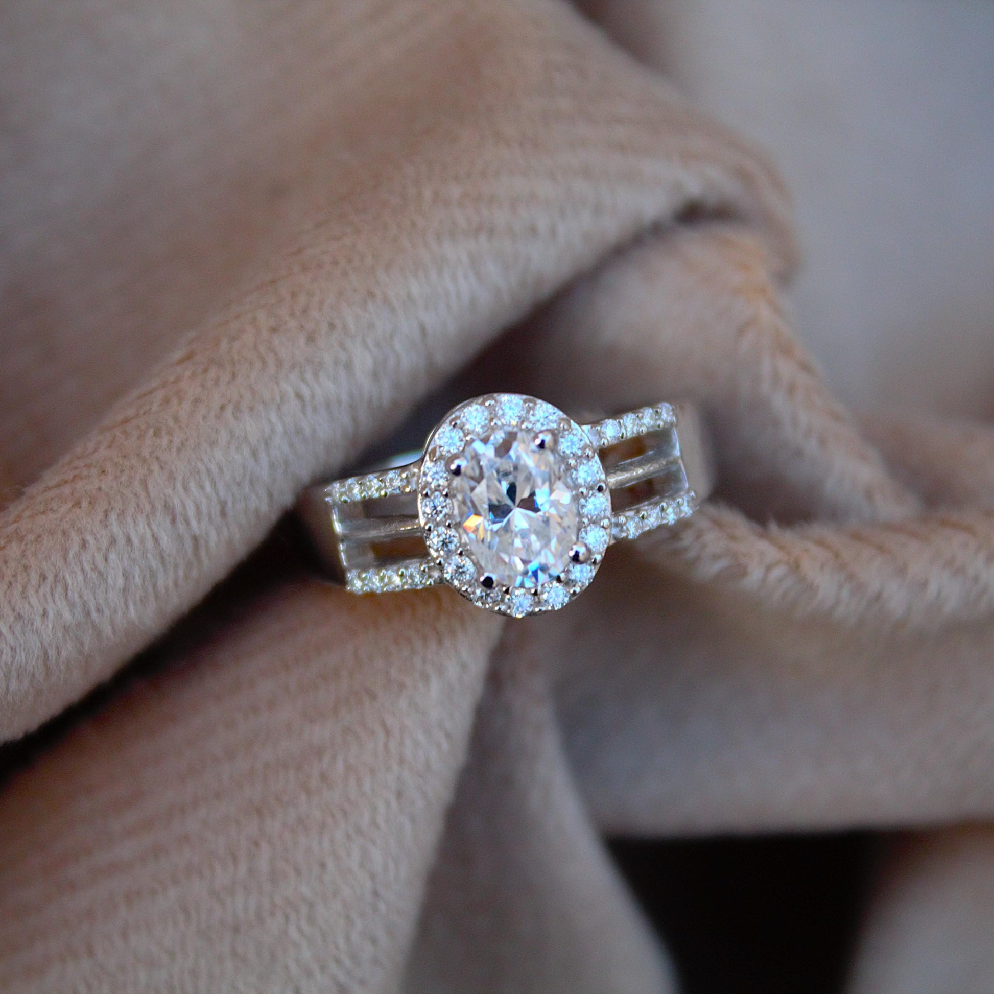 Oval Moissanite Engagement Ring, 925 Sterling Silver Statement Ring, Oval Cut Stone Ring for Women, Handmade Silver Ring, Moissanite Jewelry Product Details : ✥ Material ::- 925 Sterling Silver ✥ Gemstone ::- Moissanite ✥ Gross Weight ::- 4.475 Gm. (approx) ✥ Net Weight ::- 4.20 Gm. (approx) ✥ Stone Weight ::- 1.293 Ct. (approx) ✥ Stone Quantity ::- 33 ✥ Gemstone Shape ::- Round, oval Customization:- We are able to make changes to this design according to your need or can make any other design you may desire, just send us photo of your favourite product and get it made in your desired materials. Care Instructions:- Wipe your jewelry with a soft cloth after every use Always store your jewelry in a flat box to avoid accidental scratches Benefits Of Wearing Moissanite Gemstone :- Moissanite a diamond alternative encourages you to set greater goals and accomplish success and recognition in your industry of choice. Your personality becomes more endearing, likeable, and magnificent. Also Moissanite is diamond tester positive. Moissanite is believed to be a stone of the future and can help those who want to manifest their dreams and desires. It is said to enhance intuition and creativity and can help you tap into your inner power and potential. If you have any questions or need more information, Please feel free to contact us. For more amazing designs visit our shop https://www.etsy.com/shop/Gemethysts