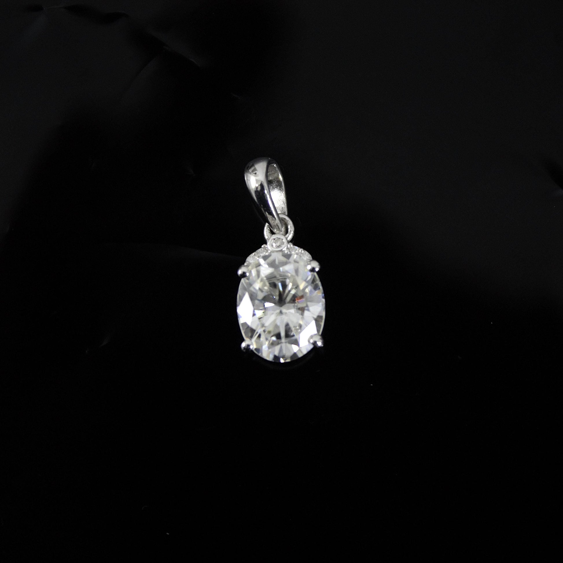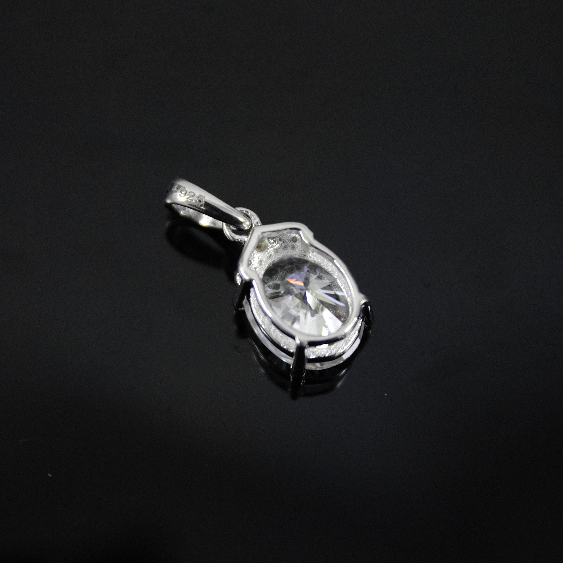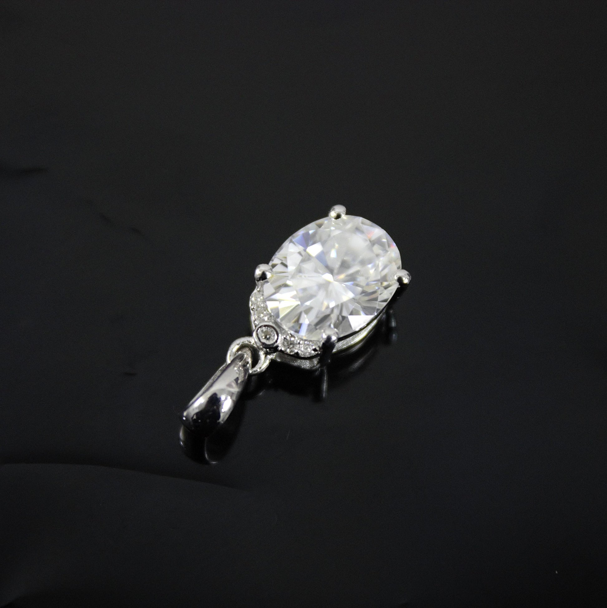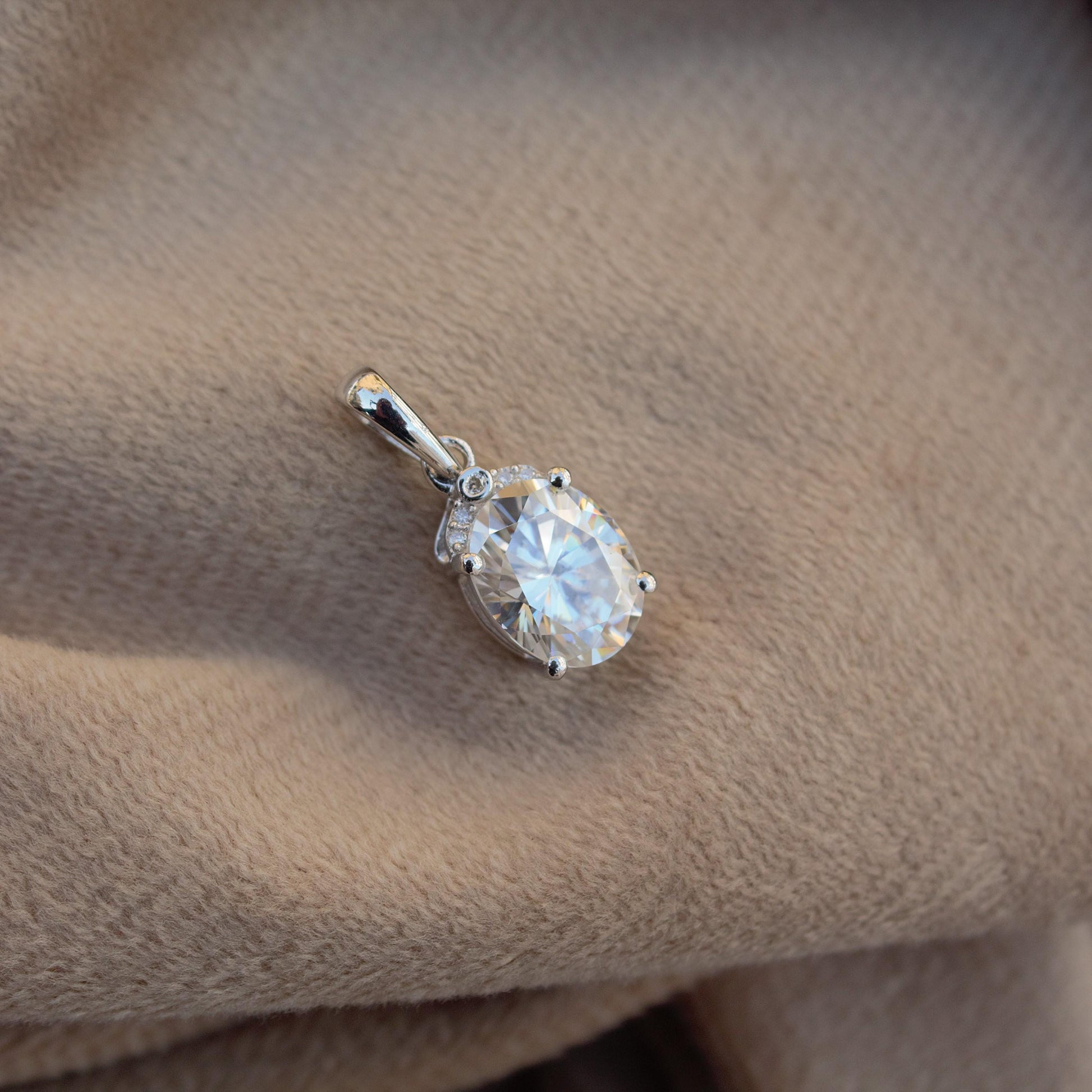 Oval Moissanite Silver Pendant, Solitaire White Stone Pendant, 925 Sterling Silver Sparkling Pendant, Classic Silver Pendant Jewelry for Her