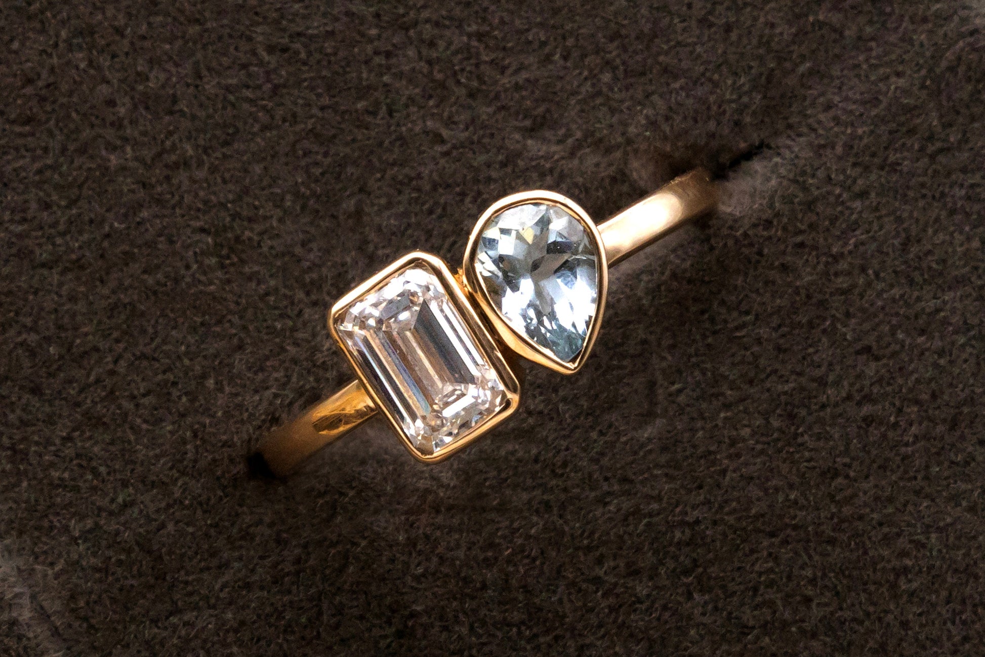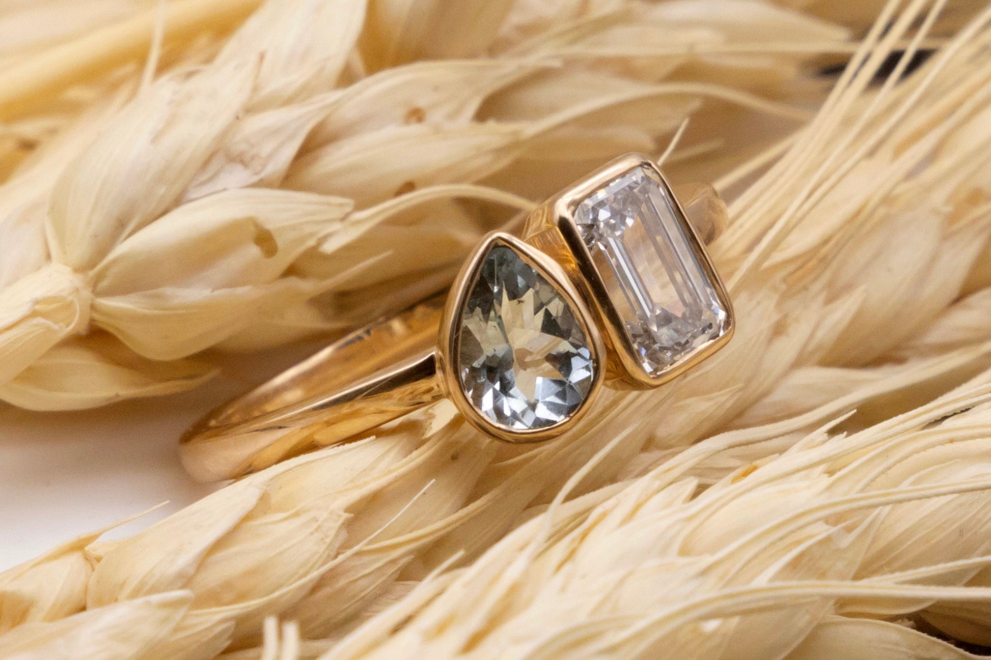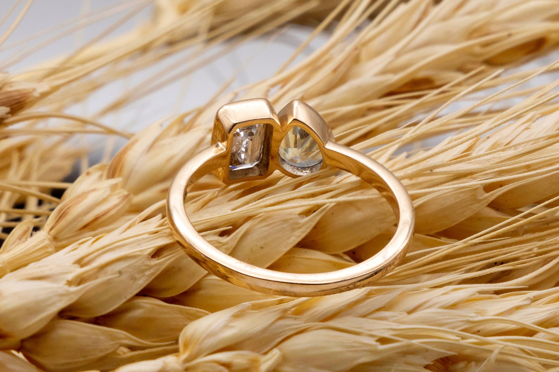 Pear and Radiant Cut Lab Created Diamond Ring, Anniversary Ring for Women, Solid14k-18k Gold Ring, FG VVS/VS Diamond Jewelry, Christmas Gift Product Specifications: ✥ 𝐒𝐭𝐨𝐧𝐞 𝐃𝐞𝐭𝐚𝐢𝐥𝐬 ↣ Material ::- 10K, 14K, 18K Gold ↣ Stone : lab grown diamond ↣ Shape: Pear ↣ Color: FG ↣ Clarity: VVS / VS ↣ Sizes : 7 X 5 MM ↣ Carat Weight : 1 carat ✥ 𝐒𝐢𝐝𝐞 𝐒𝐭𝐨𝐧𝐞 𝐃𝐞𝐭𝐚𝐢𝐥𝐬 ↣ Material ::- 10k- 14k- 18k Gold ↣ Shape: Radiant ↣ Type: lab grown diamond ↣ Color: FG ↣ Clarity: VVS / VS ↣ Size : 7 X 5 MM ↣ Carat Weight : 1 carat Customization:- We are able to make changes to this design according to your need or can make any other design you may desire, just send us photo of your favourite product and get it made in your desired materials. Care Instructions:- Wipe your jewelry with a soft cloth after every use Always store your jewelry in a flat box to avoid accidental scratches About Lab Diamond:- Lab-grown diamonds share the same physical, chemical, and optical properties as mined diamonds. Their matching brilliance and sparkle make their appearance indistinguishable from diamonds sourced from the Earth. These gems are created in controlled, humane conditions. This eliminates concerns about 'blood diamonds' or worker exploitation that can occur in diamond mining. Lab-grown diamonds shine brightly as an excellent choice for your jewelry. These ethical diamonds offer the identical aesthetic of mined diamonds, with the added benefits of sustainability, affordability, and higher quality. If you have any questions or need more information, Please feel free to contact us. For more amazing designs visit our shop https://www.etsy.com/shop/Gemethysts