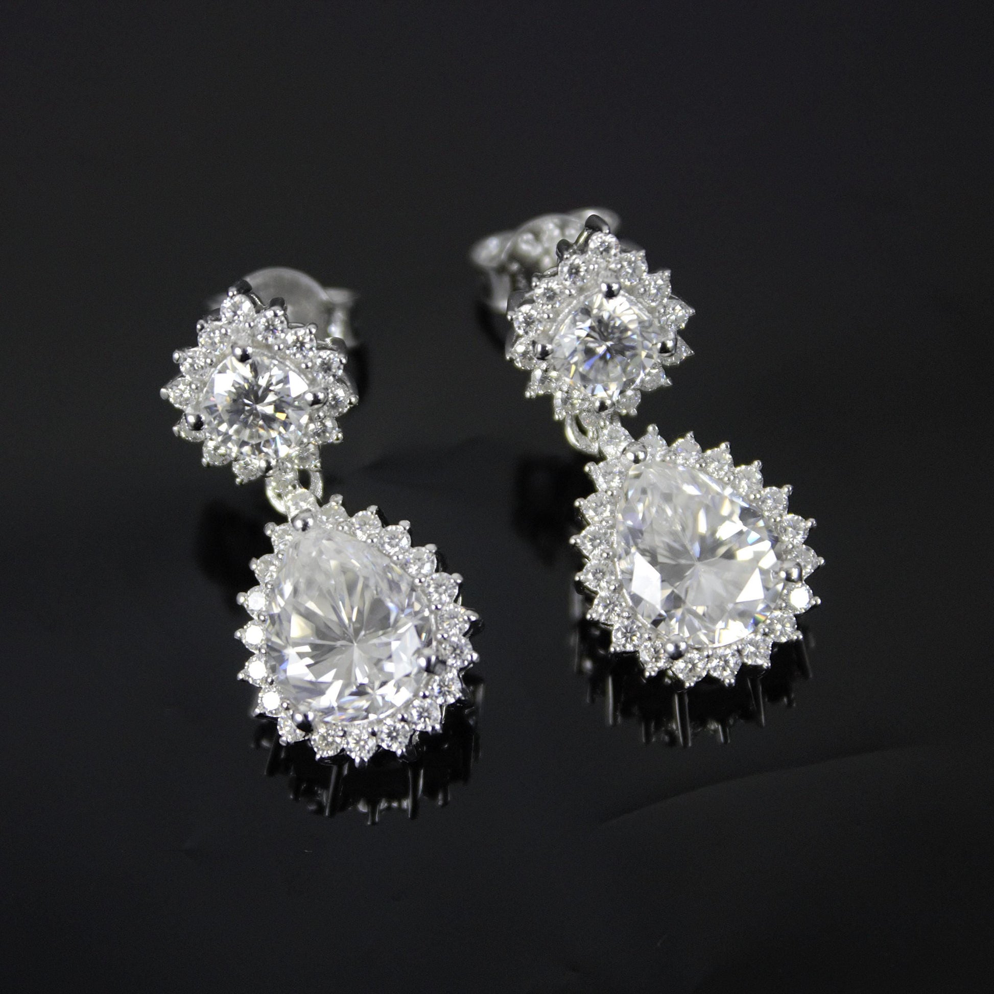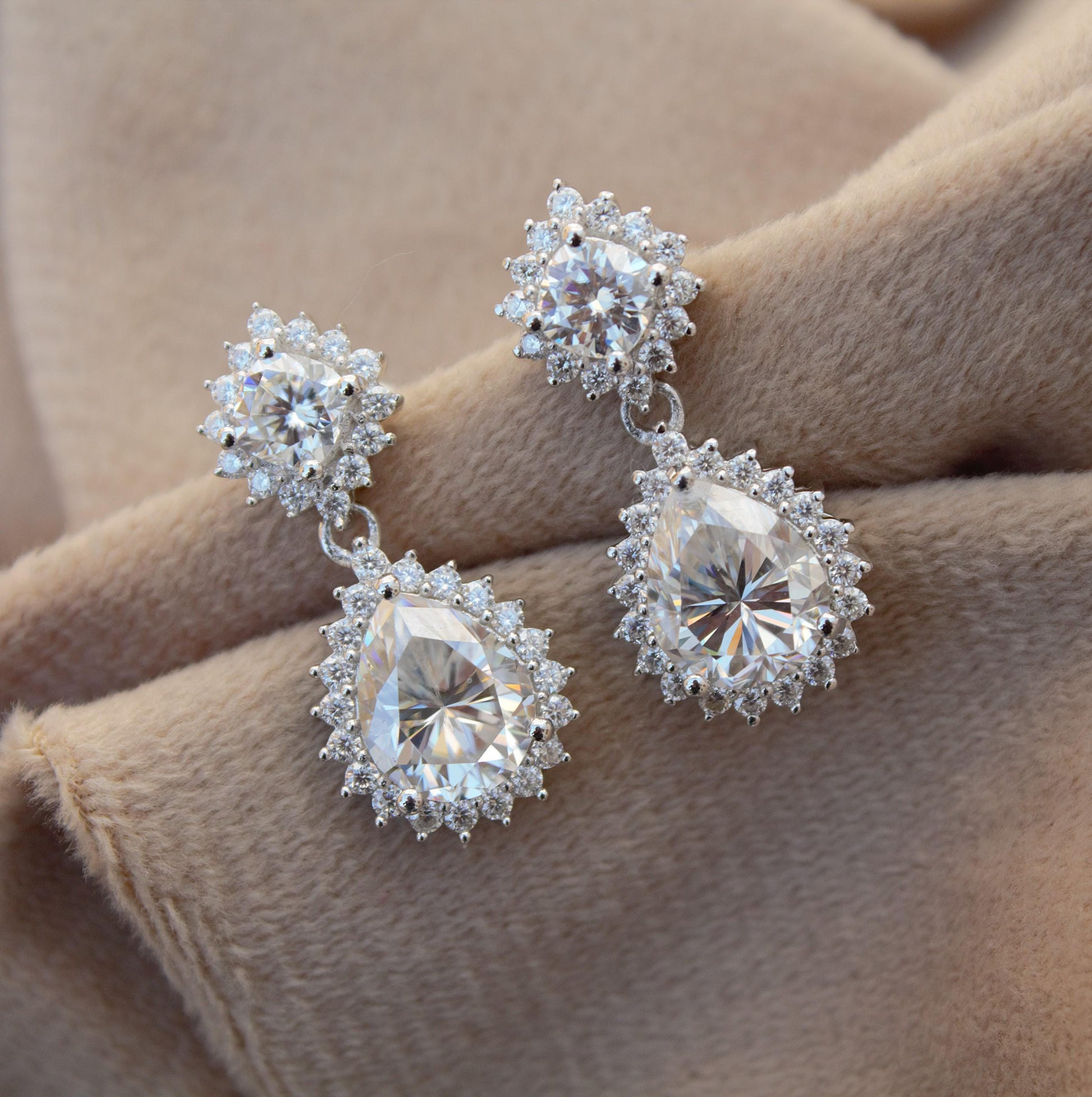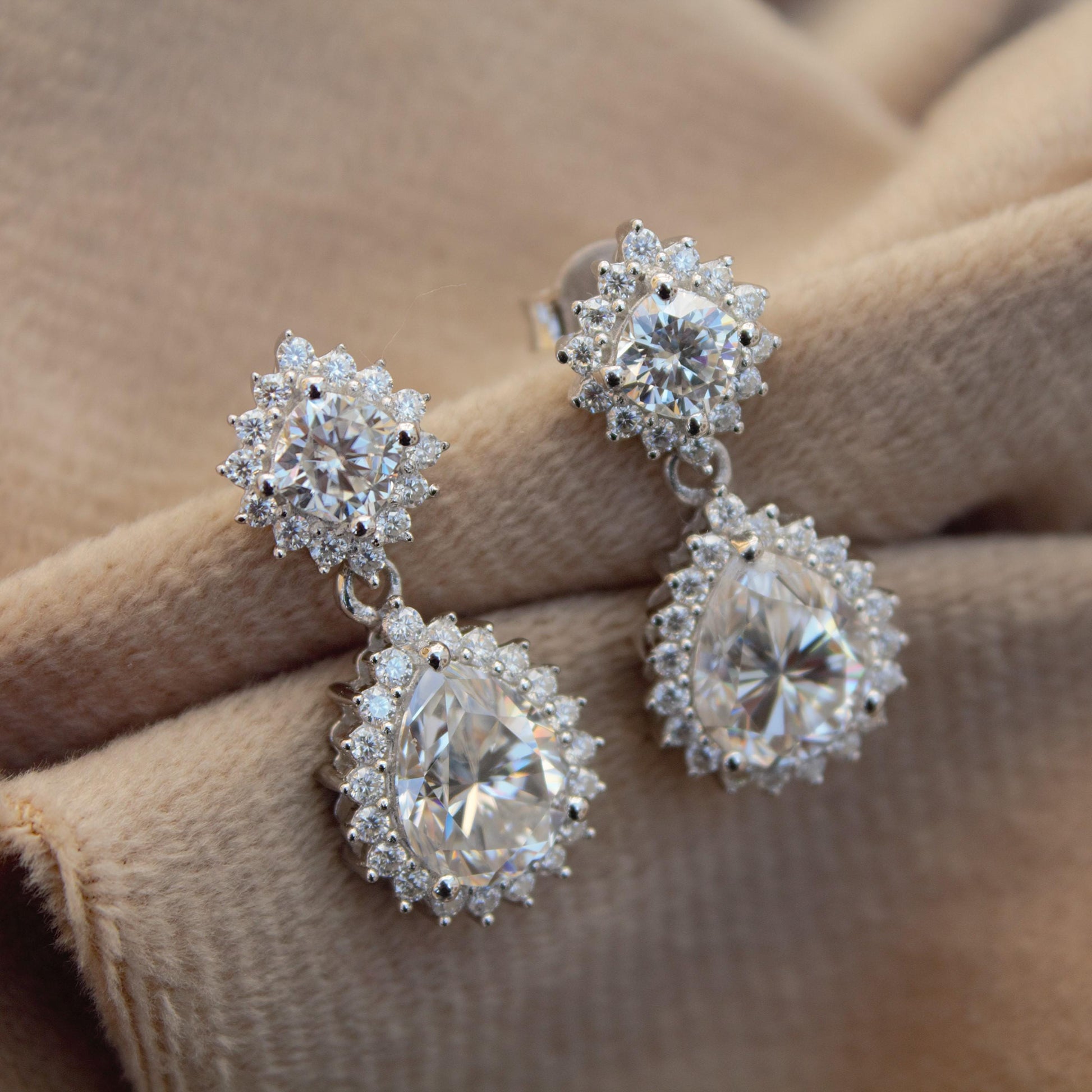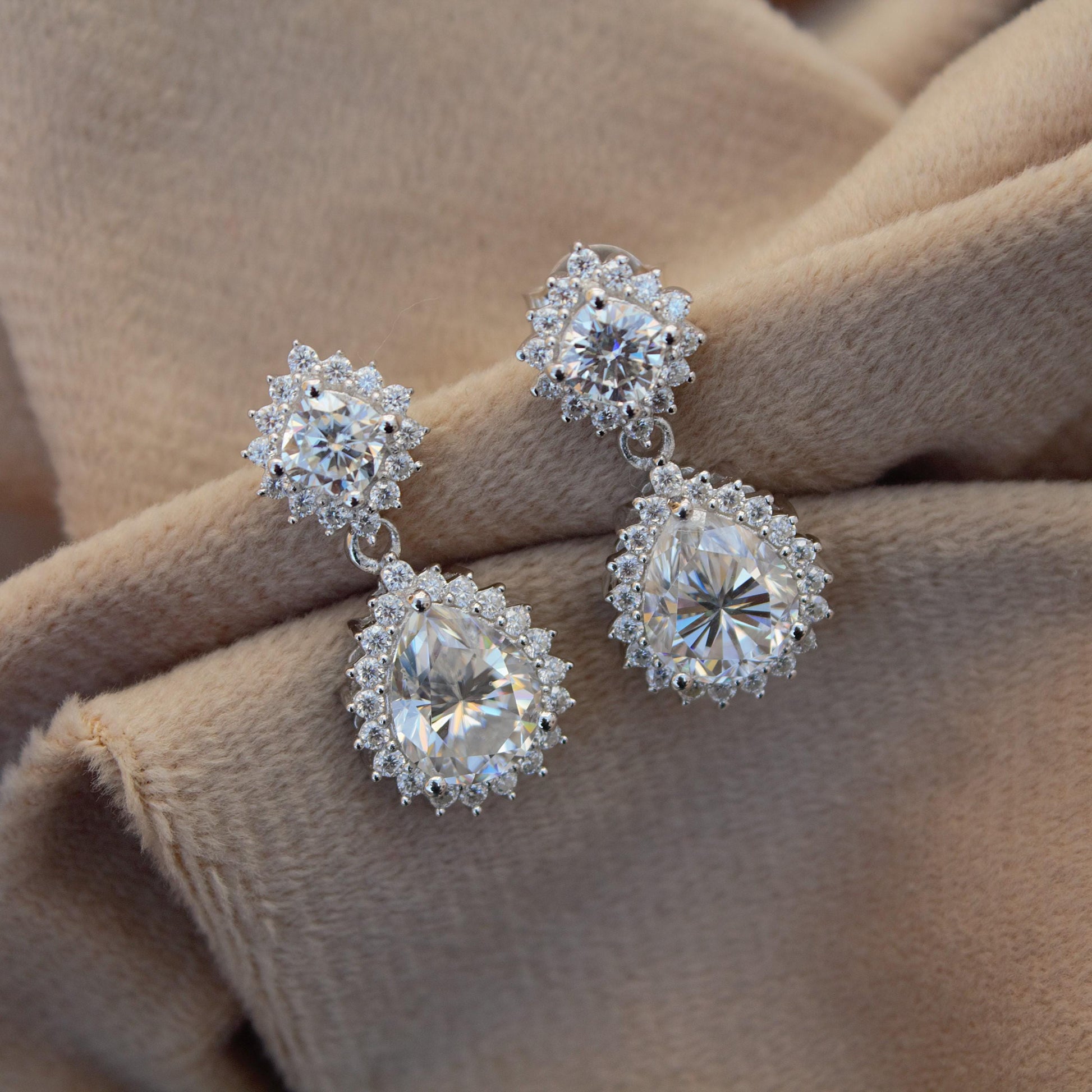 Pear Moissanite Drop Earrings, 925 Sterling Silver Push Back Earrings, Designer Dangle Earrings, Silver Bridal Earrings, Moissanite Jewelry