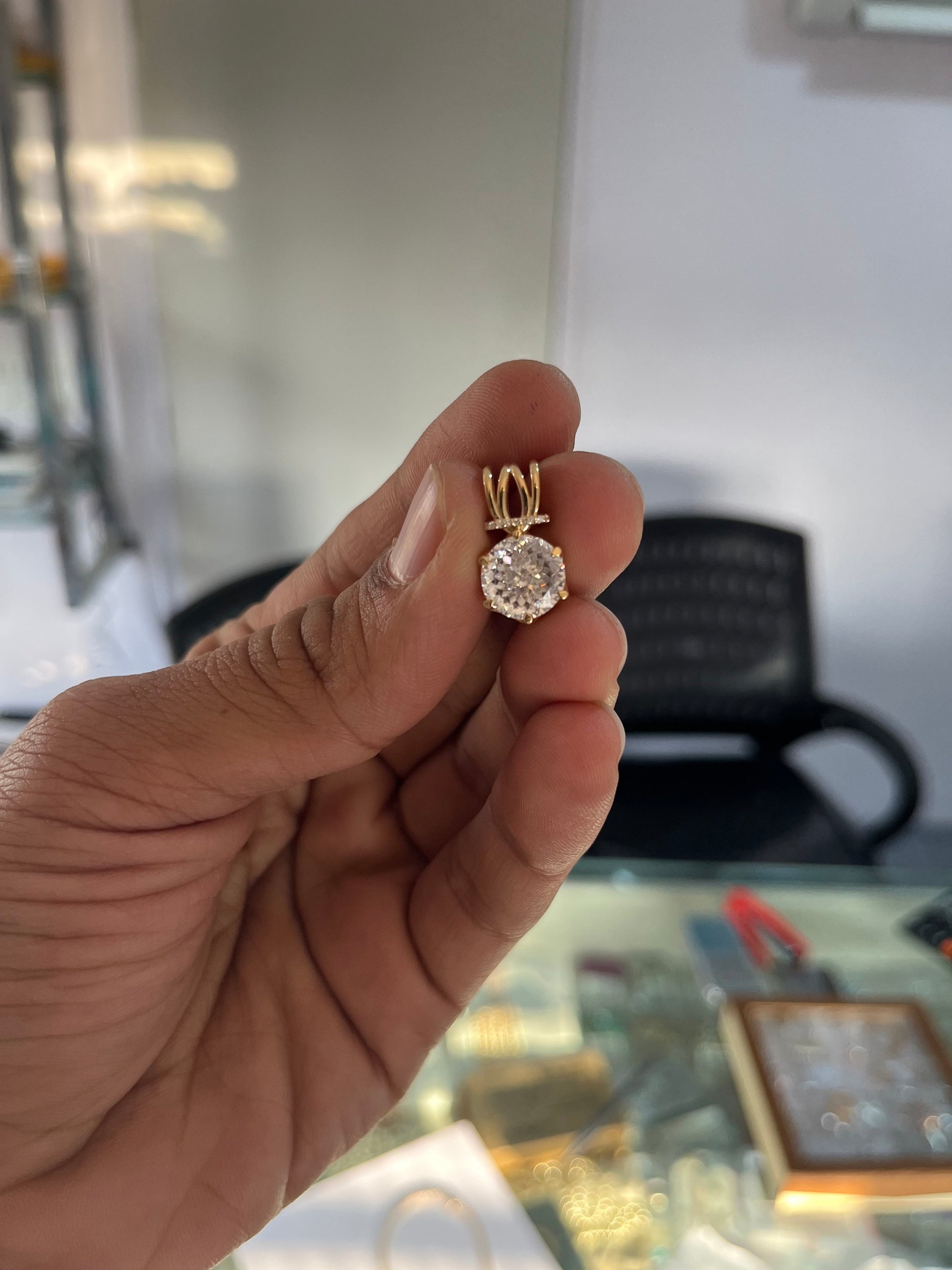 Portuguese Cut Simulated Diamond Pendant, Solitaire Pendant, Minimalist Pendant, Round Shape Pendant, Dainty Gold Pendant for Bridesmaids Product Details : ✥ Material ::- 10K 14K 18K Solid Gold ✥ Gemstone ::- Moissanite ✥ Dimension::- 10 MM ✥ Carat Weight ::- 4 Carat (app.) ✥ Gemstone Shape ::- Portuguese Customization:- We are able to make changes to this design according to your need or can make any other design you may desire, just send us photo of your favourite product and get it made in your desired materials. Care Instructions:- Wipe your jewelry with a soft cloth after every use Always store your jewelry in a flat box to avoid accidental scratches ✥✥✥✥✥✥Benefits Of Wearing Moissanite Gemstone✥✥✥✥✥✥ Moissanite a diamond alternative encourages you to set greater goals and accomplish success and recognition in your industry of choice. Your personality becomes more endearing, likeable, and magnificent. Also Moissanite is diamond tester positive. Moissanite is believed to be a stone of the future and can help those who want to manifest their dreams and desires. It is said to enhance intuition and creativity and can help you tap into your inner power and potential. If you have any questions or need more information, Please feel free to contact us. For more amazing designs visit our shop https://www.etsy.com/shop/Gemethysts