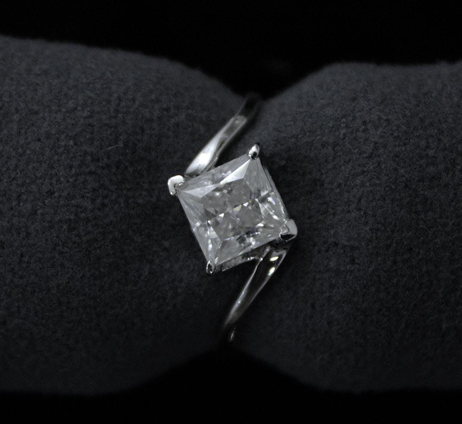 Princess Cut Moissanite White Stone Ring, 925 Sterling Silver Ring, Handmade Jewelry, Square Shape Moissanite Ring, Colorless Moissanite Ring Product Details : ✥ Material ::- 925 Sterling Silver ✥ Gemstone ::- Moissanite ✥ Gross Weight ::- 1.472 Gm. (approx) ✥ Net Weight ::- 1.235 Gm. (approx) ✥ Stone Weight ::- 1.185 Ct. (approx) ✥ Stone Quantity ::- 1 ✥ Gemstone Shape ::- Princess Cut Customization:- We are able to make changes to this design according to your need or can make any other design you may desire, just send us photo of your favourite product and get it made in your desired materials. Care Instructions:- Wipe your jewelry with a soft cloth after every use Always store your jewelry in a flat box to avoid accidental scratches ✥✥✥✥✥✥Benefits Of Wearing Moissanite Gemstone✥✥✥✥✥✥ Moissanite a diamond alternative encourages you to set greater goals and accomplish success and recognition in your industry of choice. Your personality becomes more endearing, likeable, and magnificent. Also Moissanite is diamond tester positive. Moissanite is believed to be a stone of the future and can help those who want to manifest their dreams and desires. It is said to enhance intuition and creativity and can help you tap into your inner power and potential. If you have any questions or need more information, Please feel free to contact us. For more amazing designs visit our shop https://www.etsy.com/shop/Gemethysts