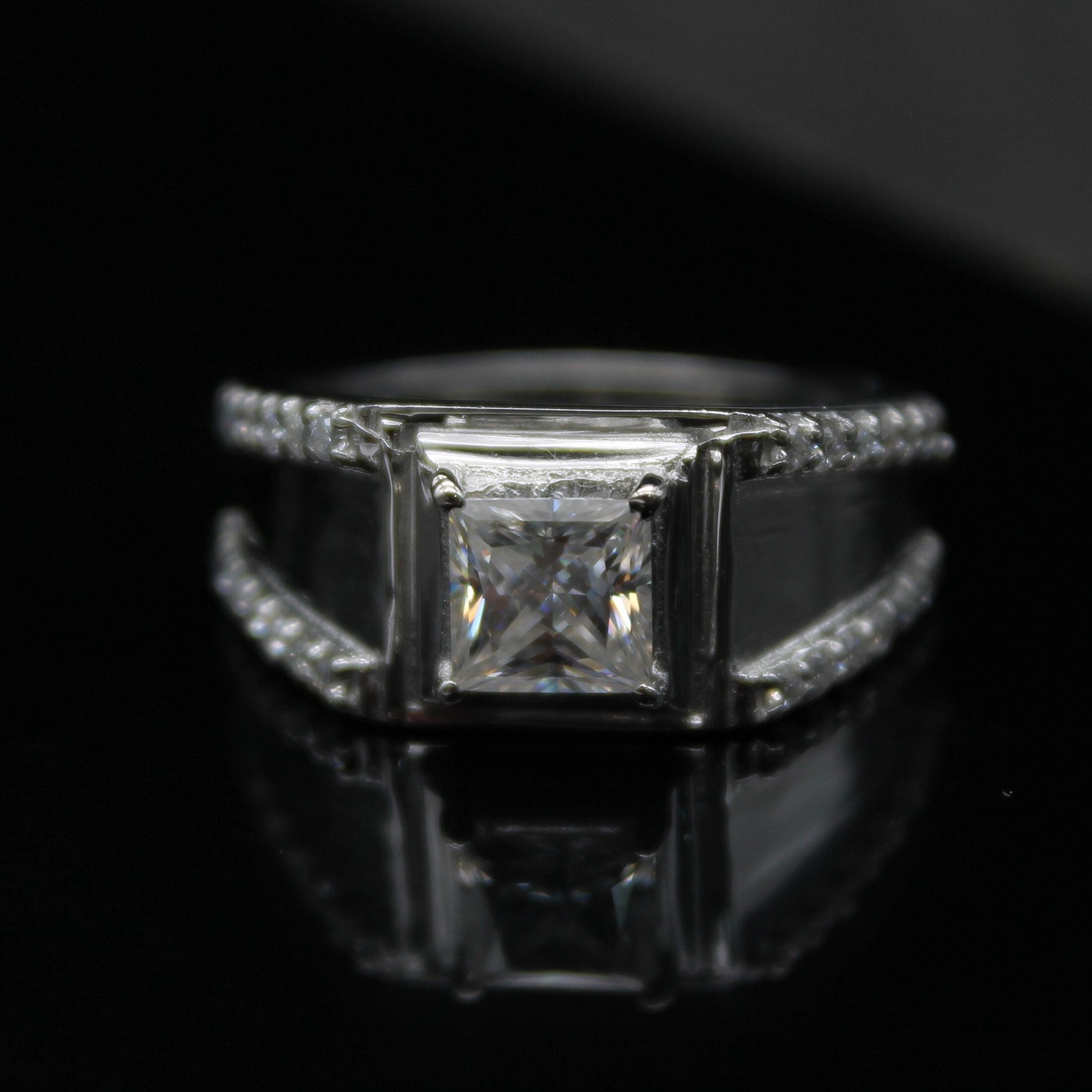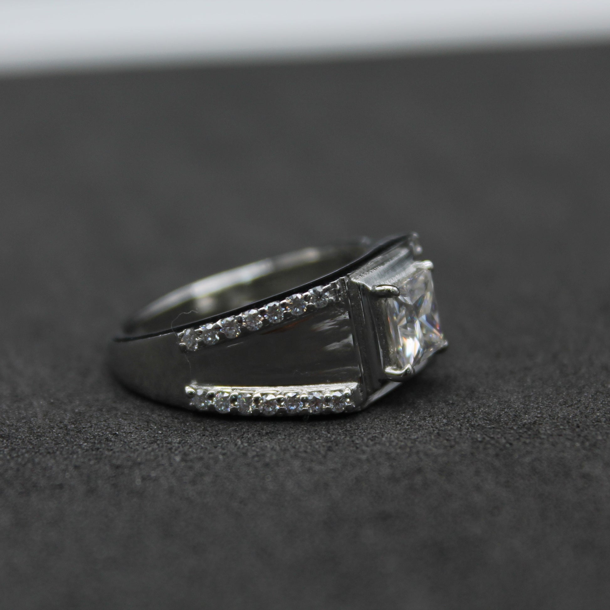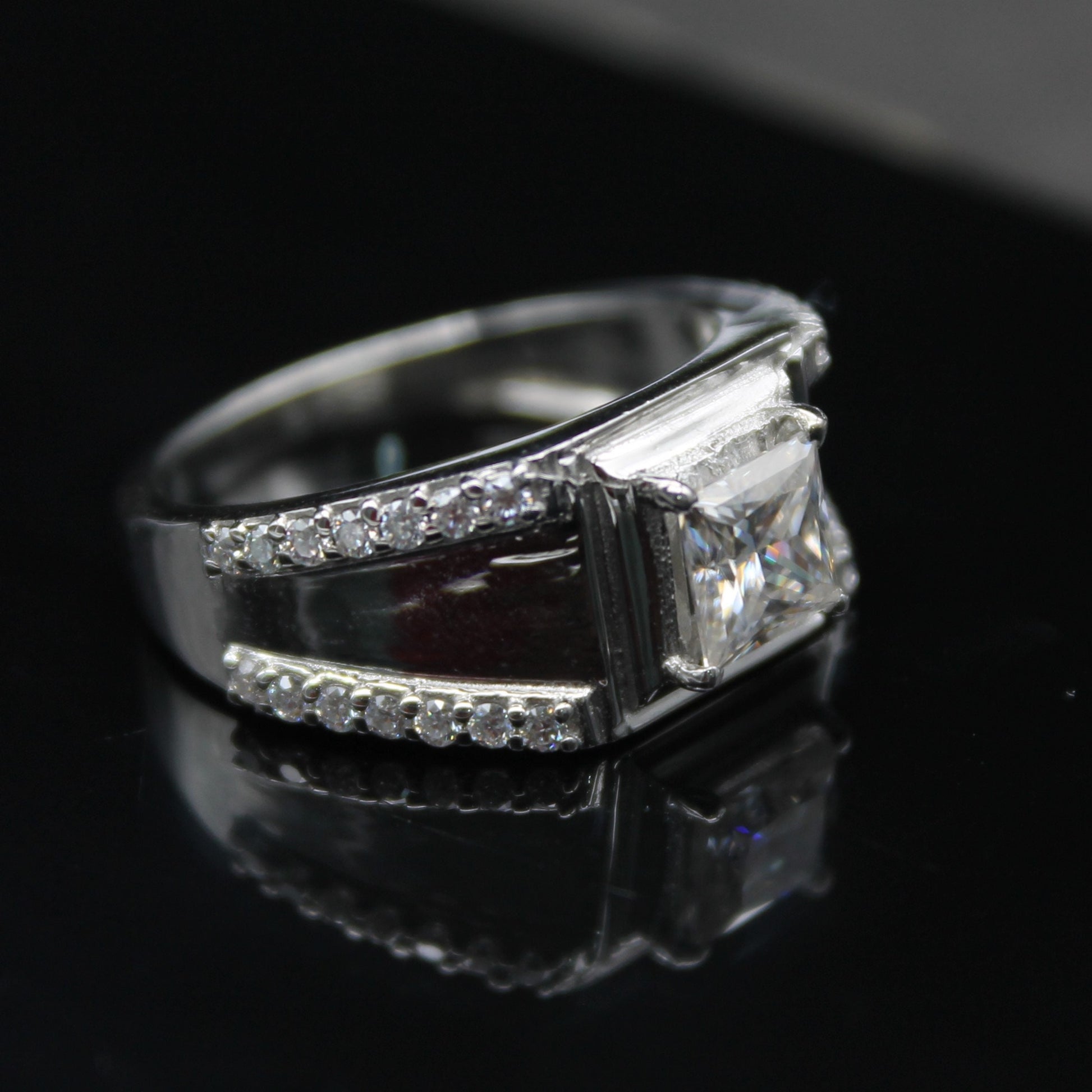 Princess Cut With Side Round Moissanite Ring, Men's Wedding Ring, Unique Silver Ring, Moissanite Jewelry for Him, 925 Sterling Silver Ring Product Details : ⇨ 𝐒𝐭𝐨𝐧𝐞 𝐃𝐞𝐭𝐚𝐢𝐥𝐬 ✥ Material : 925 Sterling Silver ✥ Shape : Princess Cut ✥ Type : Moissanite ✥ Setting : Prong ✥ Dimension: 6 MM (App.) ✥ Color: Colorless ✥ Clarity: VVS ✥ Making Process : Handmade - Crafted by our experienced team Customization:- We are able to make changes to this design according to your need or can make any other design you may desire, just send us photo of your favourite product and get it made in your desired materials. Care Instructions:- Wipe your jewelry with a soft cloth after every use Always store your jewelry in a flat box to avoid accidental scratches ✥✥✥✥✥✥Benefits Of Wearing Moissanite Gemstone✥✥✥✥✥✥ Moissanite a diamond alternative encourages you to set greater goals and accomplish success and recognition in your industry of choice. Your personality becomes more endearing, likeable, and magnificent. Also Moissanite is diamond tester positive. Moissanite is believed to be a stone of the future and can help those who want to manifest their dreams and desires. It is said to enhance intuition and creativity and can help you tap into your inner power and potential. If you have any questions or need more information, Please feel free to contact us. For more amazing designs visit our shop https://www.etsy.com/shop/Gemethysts