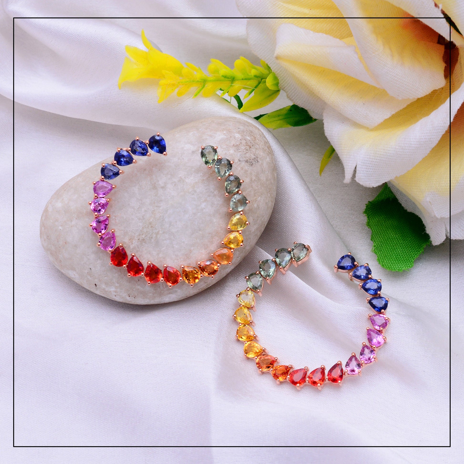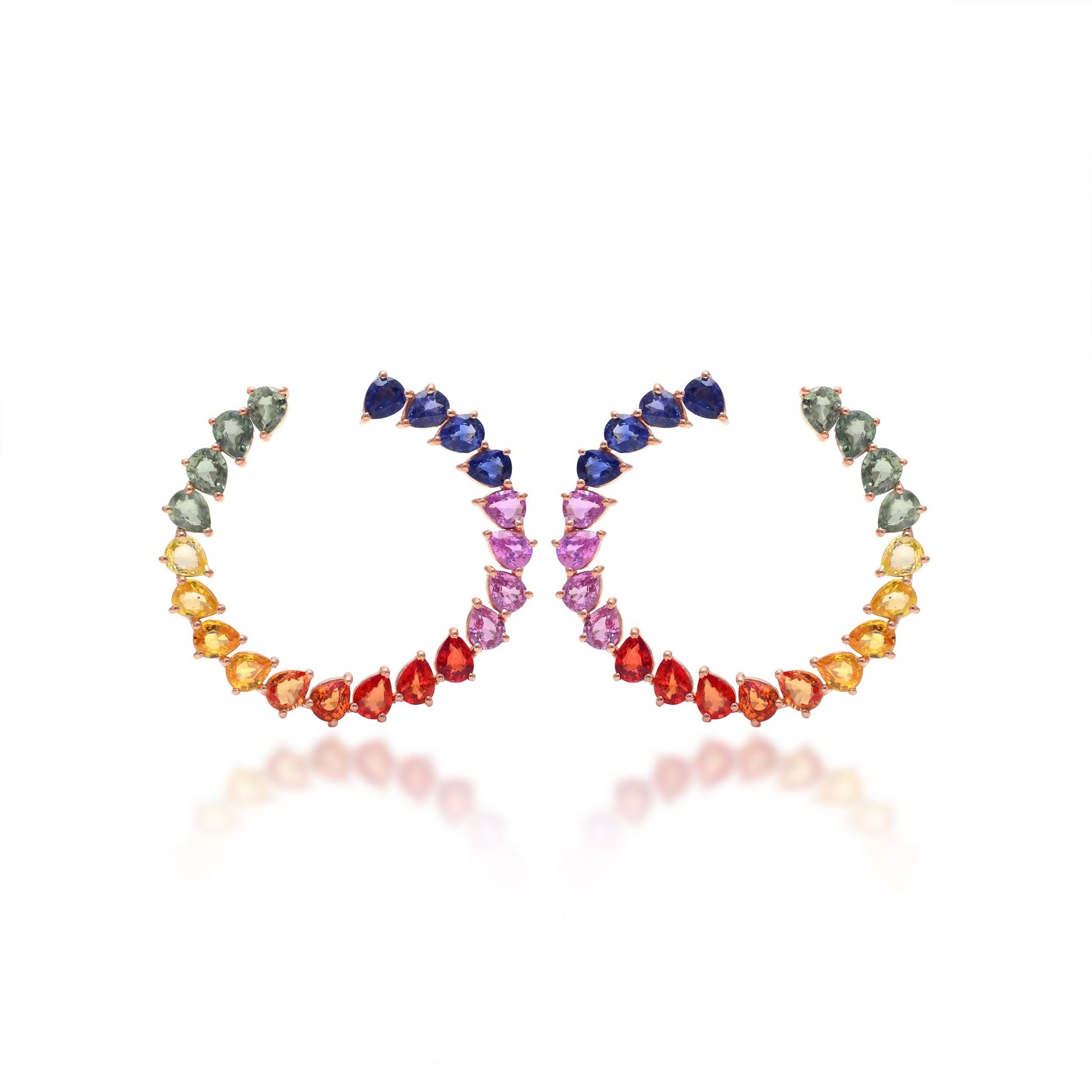 Rainbow Sapphire Big Hoops Earrings, Huggie Earrings, 14K Gold Earrings for Bride, Statement Gold Earrings, Multi Color Wedding Earrings Product Details : Customise Stone Color & Sizes Made to Order 10K 14K 18K Gold. Stone : Rainbow Sapphire Shape: Pear Cut Size : 5 X 4 MM (approx) Number Of Stone: 42 Carat Weight : 18 Carat (approx) Customization:- We are able to make changes to this design according to your need or can make any other design you may desire, just send us photo of your favorite product and get it made in your desired materials. Care Instructions:- Wipe your jewelry with a soft cloth after every use Always store your jewelry in a flat box to avoid accidental scratches About Rainbow Sapphire :- Rainbow sapphires make perfect gifts, not only due to their mesmerizing beauty but also because they are associated with meaningful symbolism. As a birthstone for September, these gems are believed to bring wisdom, protection, and good fortune to those born during this month. Wearing Rainbow Sapphires is believed to cure various diseases like rheumatism and colic and mental illnesses like tension and mental confusion. Rainbow sapphires are a good choice for jewelry because they complement all outfits, express your inner wild and vibrant side, and have aesthetic appeal and sophisticated elegance. If you have any questions or need more information, Please feel free to contact us. For more amazing designs visit our shop https://www.etsy.com/shop/Gemethysts