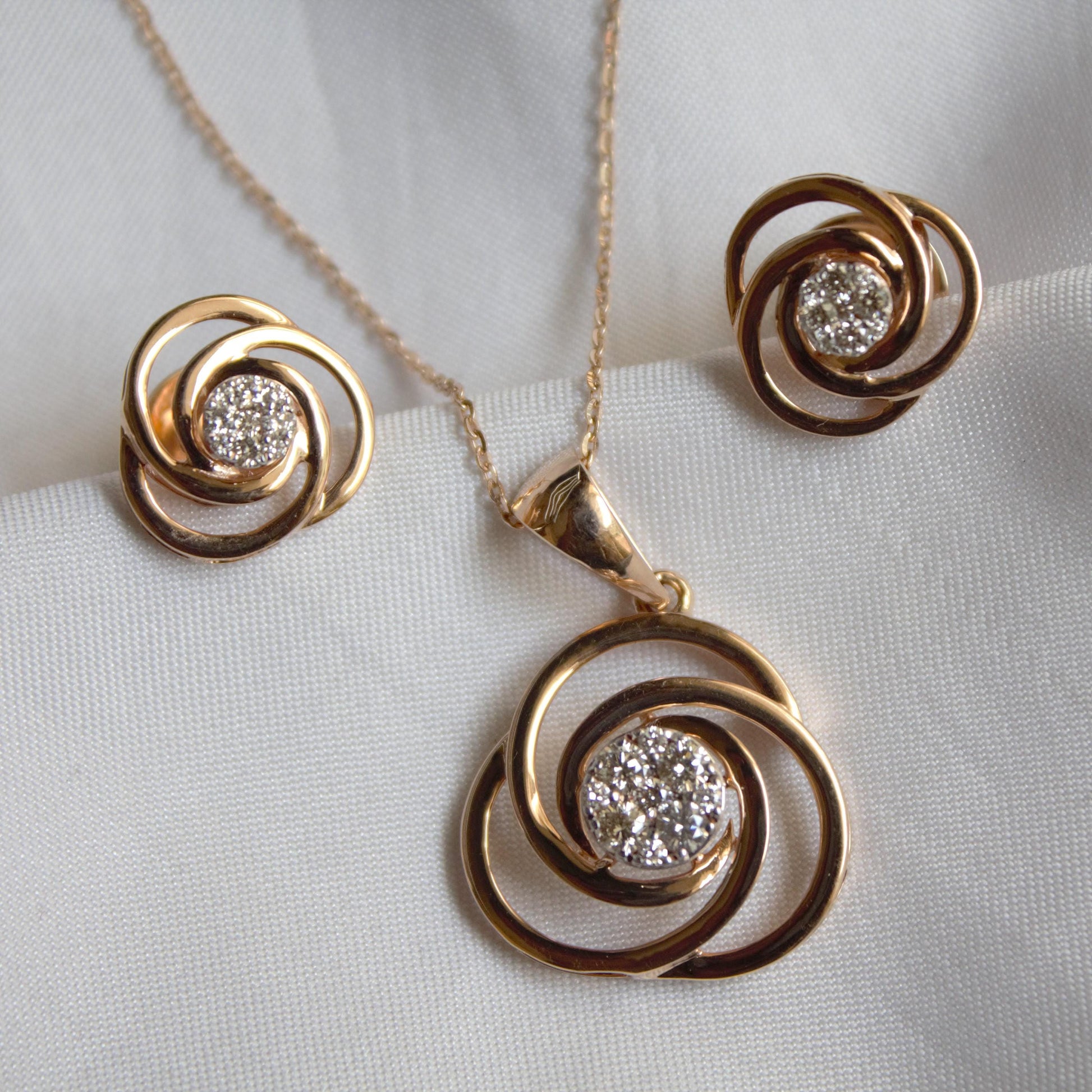 Real Diamond Solitaire Necklace Set, Round Cut Pendant with Stud Earrings,18k Rose Gold Charm Pendant, Tiny Stud Earrings, Gift for Daughter IGI Certified Real Diamond Gold Jewelry. Product Details- Necklace Details : Gold Purity : 18K Gold Gross Weight : 4.9 grams Net Weight : 4.826 grams Diamond Weight : 0.37 carat Diamond Color : H - I Diamond Clarity : VS - SI IGI Report : 73J150462412 IGI Certificate Report Link : https://www.igi.org/verify-your-report/?r=73J150462412 Earrings Details : Gold Purity : 18K Gold Gross Weight : 4.57 grams Net Weight : 4.516 grams Diamond Weight : 0.27 carat Diamond Color : H - I Diamond Clarity : VS - SI IGI Report : 73J150472412 IGI Certificate Report Link : https://www.igi.org/verify-your-report/?r=73J150472412 About Diamond :- The history of diamonds is a tale that spans millennia and continents. Diamonds were first discovered in India, where they were revered for their extraordinary beauty and symbolism. Ancient Indian texts, dating back to at least the 4th century BC, mention diamonds as "Vajra," a term signifying both thunderbolts and diamonds, highlighting their indestructibility. Natural Diamond, is one of such sparkling gemstones with various benefits. Real Heera symbolizes true undying love. Physically it is considered unbreakable. On the chemical ground, Diamond is said to be the strongest mineral present on the planet Earth. It is a naturally occurring material produced by components of carbon. Clear colorless diamonds are though quite rare and uncommon; diamonds with a tint of yellow and brown colors are most easily found. Real Diamond, popularly renowned as Heera in Hindi, is one of the nine gemstones on the list of Navratna gemstones. It is undeniably the first love of any woman. Customization:- We are able to make changes to this design according to your need or can make any other design you may desire, just send us photo of your favorite product and get it made in your desired materials. Care Instructions:- Wipe your jewelry with a soft cloth after every use Always store your jewelry in a flat box to avoid accidental scratches For more amazing designs visit our shop https://www.etsy.com/shop/Gemethysts