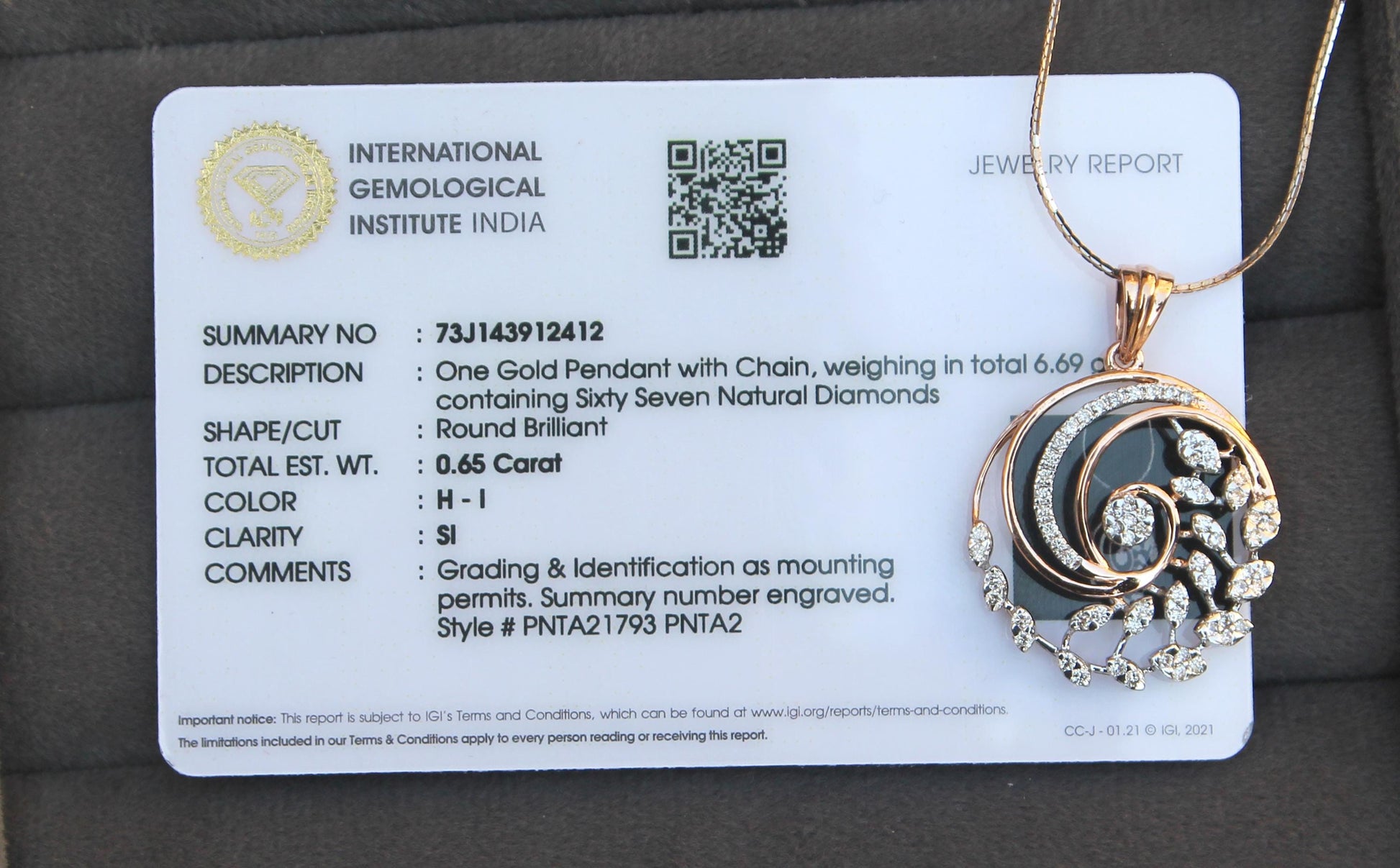 Rose Gold Necklace Earrings Set, Bridal Wedding Jewelry Set, 18k Solid Gold Necklace with Earrings, IGI Certified Natural Diamond Jewelry IGI Certified Real Diamond Gold Jewelry. Product Details- Necklace Details : Gold Purity : 18K Gold Gross Weight : 6.69 grams Net Weight : 6.56 grams Diamond Weight : 0.65 carat Diamond Color : H-I Diamond Clarity : SI IGI Report : 73J143912412 IGI Certificate Report Link : https://www.igi.org/verify-your-report/?r=73J143912412 Earrings Details : Gold Purity : 18K Gold Gross Weight : 4.79 grams Net Weight : 4.714 grams Diamond Weight : 0.38 carat Diamond Color : H-I-J Diamond Clarity : SI IGI Report : 73J150752412 IGI Certificate Report Link : https://igi.org/verify-your-report/?r=73J150752412 About Diamond :- The history of diamonds is a tale that spans millennia and continents. Diamonds were first discovered in India, where they were revered for their extraordinary beauty and symbolism. Ancient Indian texts, dating back to at least the 4th century BC, mention diamonds as "Vajra," a term signifying both thunderbolts and diamonds, highlighting their indestructibility. Natural Diamond, is one of such sparkling gemstones with various benefits. Real Heera symbolizes true undying love. Physically it is considered unbreakable. On the chemical ground, Diamond is said to be the strongest mineral present on the planet Earth. It is a naturally occurring material produced by components of carbon. Clear colorless diamonds are though quite rare and uncommon; diamonds with a tint of yellow and brown colors are most easily found. Real Diamond, popularly renowned as Heera in Hindi, is one of the nine gemstones on the list of Navratna gemstones. It is undeniably the first love of any woman. Customization:- We are able to make changes to this design according to your need or can make any other design you may desire, just send us photo of your favorite product and get it made in your desired materials. Care Instructions:- Wipe your jewelry with a soft cloth after every use Always store your jewelry in a flat box to avoid accidental scratches For more amazing designs visit our shop https://www.etsy.com/shop/Gemethysts