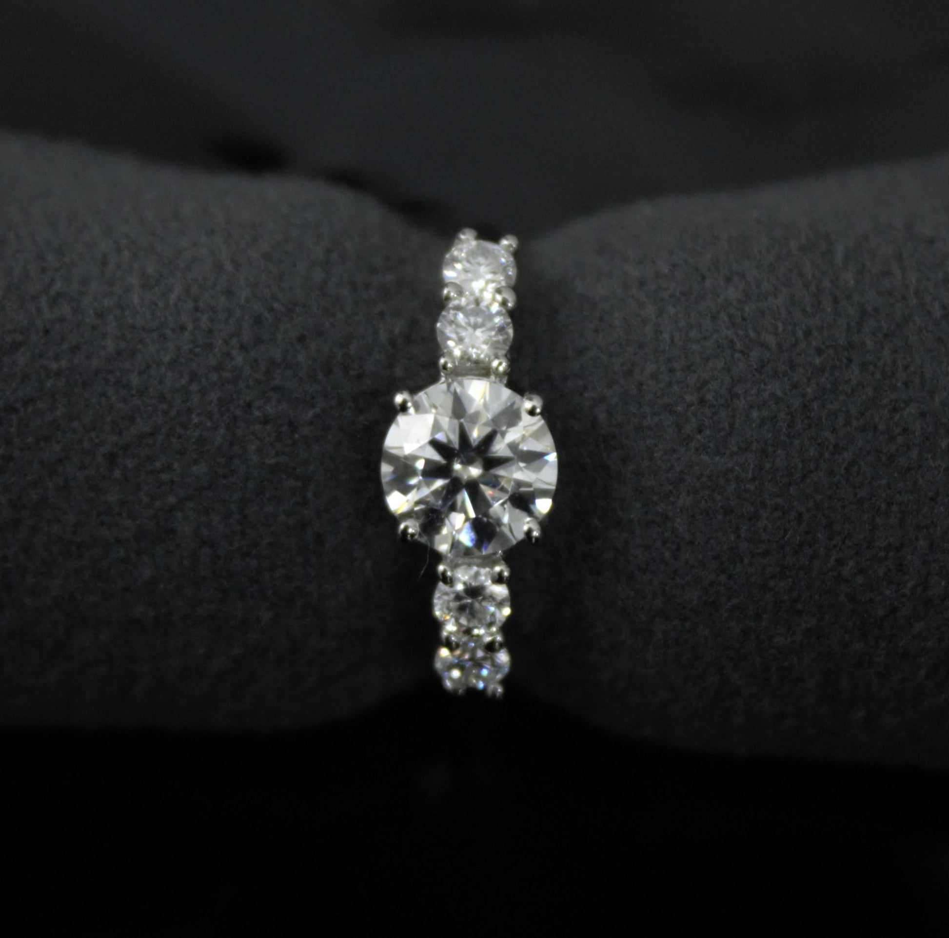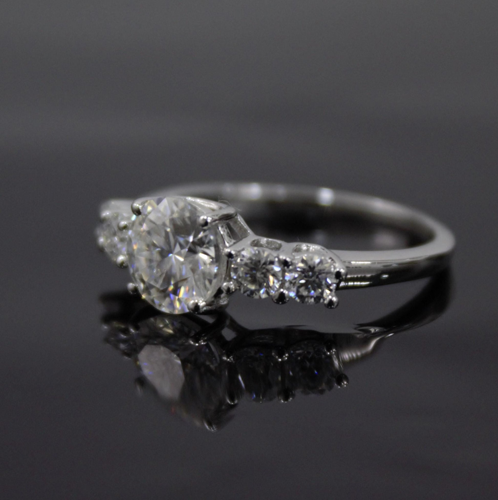 Round Cut Moissanite Ring in 925 Sterling Silver, Solitaire Silver Ring, Stackable Propose Ring, Engagement Gift for Bride, Statement Ring Product Details : ✥ Material ::- 925 Sterling Silver ✥ Gemstone ::- Moissanite ✥ Gross Weight ::- 2.182 Gm. (approx) ✥ Net Weight ::- 1.867 Gm. (approx) ✥ Stone Weight ::- 1.575 Ct. (approx) ✥ Stone Quantity ::- 5 ✥ Gemstone Shape ::- Round Customization:- We are able to make changes to this design according to your need or can make any other design you may desire, just send us photo of your favourite product and get it made in your desired materials. Care Instructions:- Wipe your jewelry with a soft cloth after every use Always store your jewelry in a flat box to avoid accidental scratches Benefits Of Wearing Moissanite Gemstone :- Moissanite a diamond alternative encourages you to set greater goals and accomplish success and recognition in your industry of choice. Your personality becomes more endearing, likeable, and magnificent. Also Moissanite is diamond tester positive. Moissanite is believed to be a stone of the future and can help those who want to manifest their dreams and desires. It is said to enhance intuition and creativity and can help you tap into your inner power and potential. If you have any questions or need more information, Please feel free to contact us. For more amazing designs visit our shop https://www.etsy.com/shop/Gemethysts