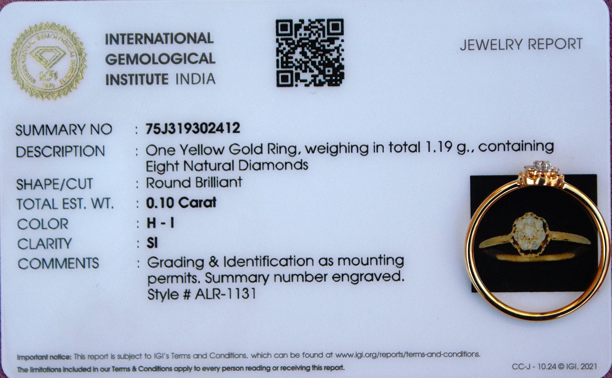 Round Melee Natural Diamond Ring For Birthday Gift, 18K Solid Gold Jewelry, Affordable Gold Ring, Real Gold Lightweight Jewelry For Gift IGI Certified Real Diamond Gold Jewelry. Product Details- Ring Details : Gold Purity : 18K Gold Gross Weight : 1.19 grams Net Weight : 1.17 grams Ring Size : 7 US Diamond Weight : 0.10 carat Diamond Color : H - I Diamond Clarity : SI IGI Report : 75J319302412 IGI Certificate Report Link : https://www.igi.org/verify-your-report/?r=75J319302412 About Diamond :- The history of diamonds is a tale that spans millennia and continents. Diamonds were first discovered in India, where they were revered for their extraordinary beauty and symbolism. Ancient Indian texts, dating back to at least the 4th century BC, mention diamonds as "Vajra," a term signifying both thunderbolts and diamonds, highlighting their indestructibility. Natural Diamond, is one of such sparkling gemstones with various benefits. Real Heera symbolizes true undying love. Physically it is considered unbreakable. On the chemical ground, Diamond is said to be the strongest mineral present on the planet Earth. It is a naturally occurring material produced by components of carbon. Clear colorless diamonds are though quite rare and uncommon; diamonds with a tint of yellow and brown colors are most easily found. Real Diamond, popularly renowned as Heera in Hindi, is one of the nine gemstones on the list of Navratna gemstones. It is undeniably the first love of any woman. Customization:- We are able to make changes to this design according to your need or can make any other design you may desire, just send us photo of your favorite product and get it made in your desired materials. Care Instructions:- Wipe your jewelry with a soft cloth after every use Always store your jewelry in a flat box to avoid accidental scratches For more amazing designs visit our shop https://www.etsy.com/shop/Gemethysts