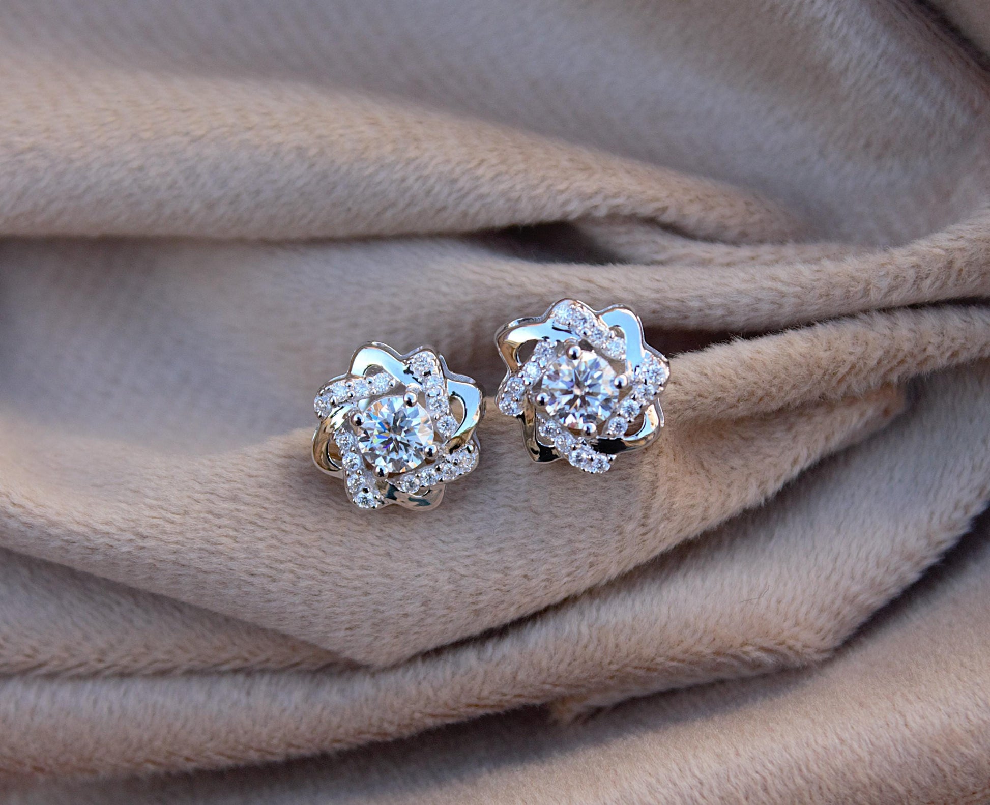 Silver Moissanite Round Cut Stone Stud Earrings, Solid 925 Sterling Silver Designer Earrings, Solitaire Earrings, Dainty Silver Jewelry Product Details : ✥ Material ::- 925 Sterling Silver ✥ Gemstone ::- Moissanite ✥ Gross Weight ::- 3.014 Gm. (approx) ✥ Net Weight ::- 2.787 Gm. (approx) ✥ Stone Weight ::- 1.132 Ct. (approx) ✥ Stone Quantity ::- 34 ✥ Stud Length ::- 16 mm ✥ Gemstone Shape ::- Round Customization:- We are able to make changes to this design according to your need or can make any other design you may desire, just send us photo of your favourite product and get it made in your desired materials. Care Instructions:- Wipe your jewelry with a soft cloth after every use Always store your jewelry in a flat box to avoid accidental scratches ✥✥✥✥✥✥Benefits Of Wearing Moissanite Gemstone✥✥✥✥✥✥ Moissanite a diamond alternative encourages you to set greater goals and accomplish success and recognition in your industry of choice. Your personality becomes more endearing, likeable, and magnificent. Also Moissanite is diamond tester positive. Moissanite is believed to be a stone of the future and can help those who want to manifest their dreams and desires. It is said to enhance intuition and creativity and can help you tap into your inner power and potential. If you have any questions or need more information, Please feel free to contact us. For more amazing designs visit our shop https://www.etsy.com/shop/Gemethysts