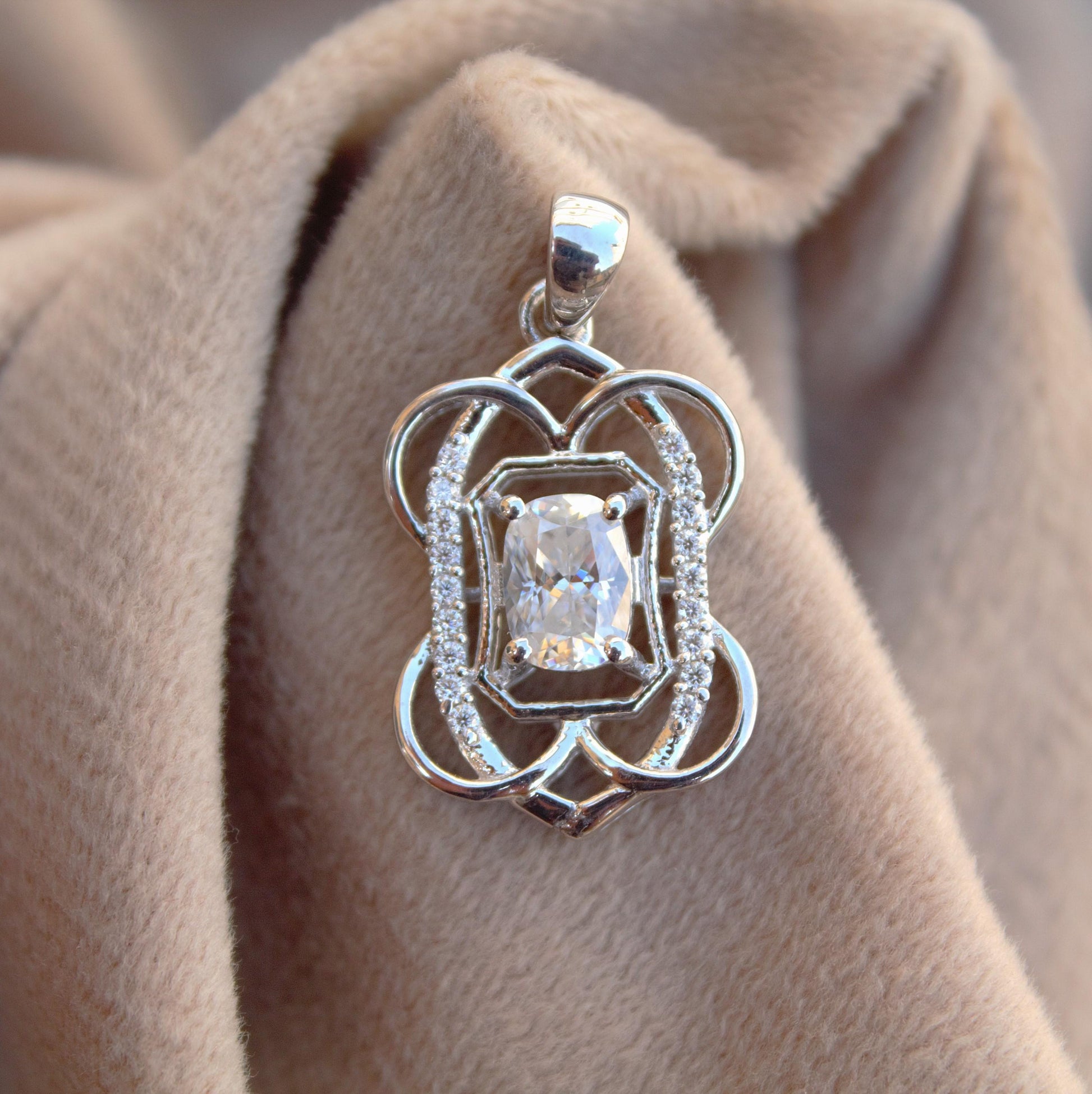 Solid 925 Sterling Silver Elongated Cushion Cut Moissanite Pendant, Minimalist Charm Pendant for Chain, Solitaire Pendant, Wedding Gift Product Details : ✥ Material ::- 925 Sterling Silver ✥ Gemstone ::- Moissanite ✥ Gross Weight ::- 2.886 Gm. (approx) ✥ Net Weight ::- 2.625 Gm. (approx) ✥ Stone Weight ::- 1.30 Ct. (approx) ✥ Stone Quantity ::- 19 ✥ Gemstone Shape ::- Oval, Round Customization:- We are able to make changes to this design according to your need or can make any other design you may desire, just send us photo of your favourite product and get it made in your desired materials. Care Instructions:- Wipe your jewelry with a soft cloth after every use Always store your jewelry in a flat box to avoid accidental scratches Benefits Of Wearing Moissanite Gemstone : Moissanite a diamond alternative encourages you to set greater goals and accomplish success and recognition in your industry of choice. Your personality becomes more endearing, likeable, and magnificent. Also Moissanite is diamond tester positive. Moissanite is believed to be a stone of the future and can help those who want to manifest their dreams and desires. It is said to enhance intuition and creativity and can help you tap into your inner power and potential. If you have any questions or need more information, Please feel free to contact us. For more amazing designs visit our shop https://www.etsy.com/shop/Gemethysts