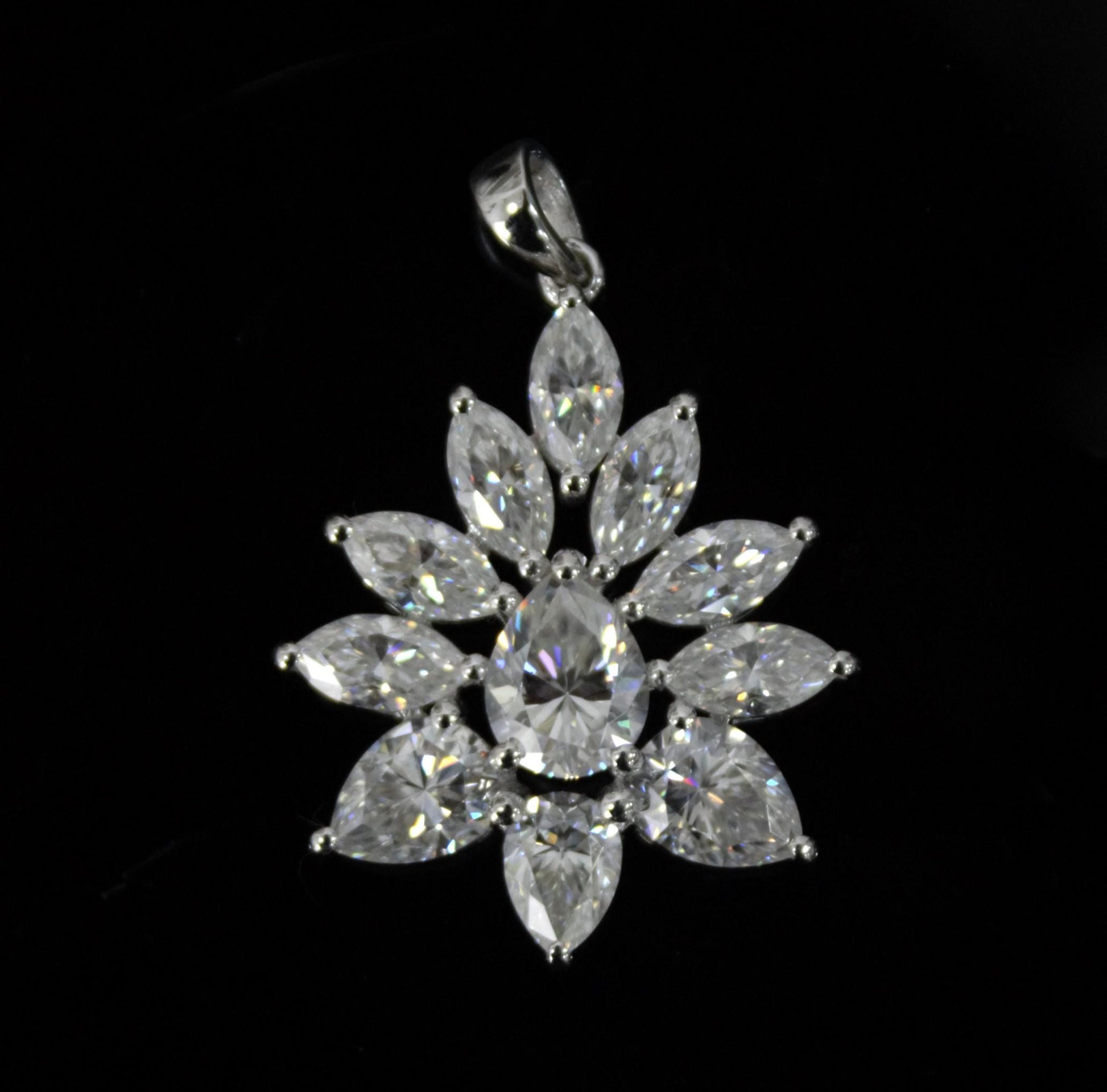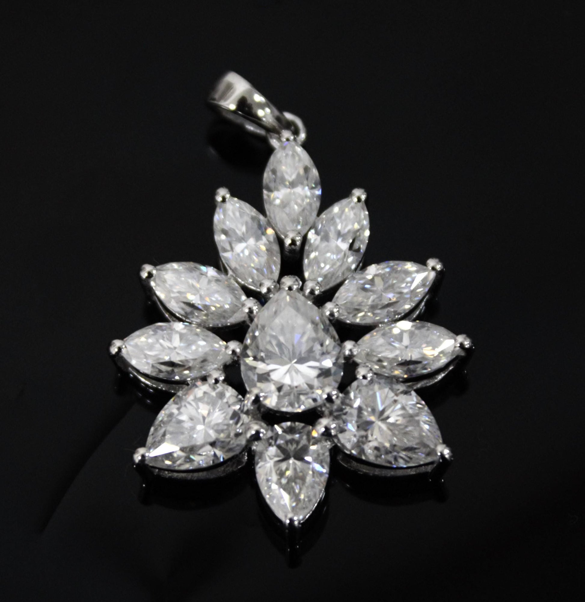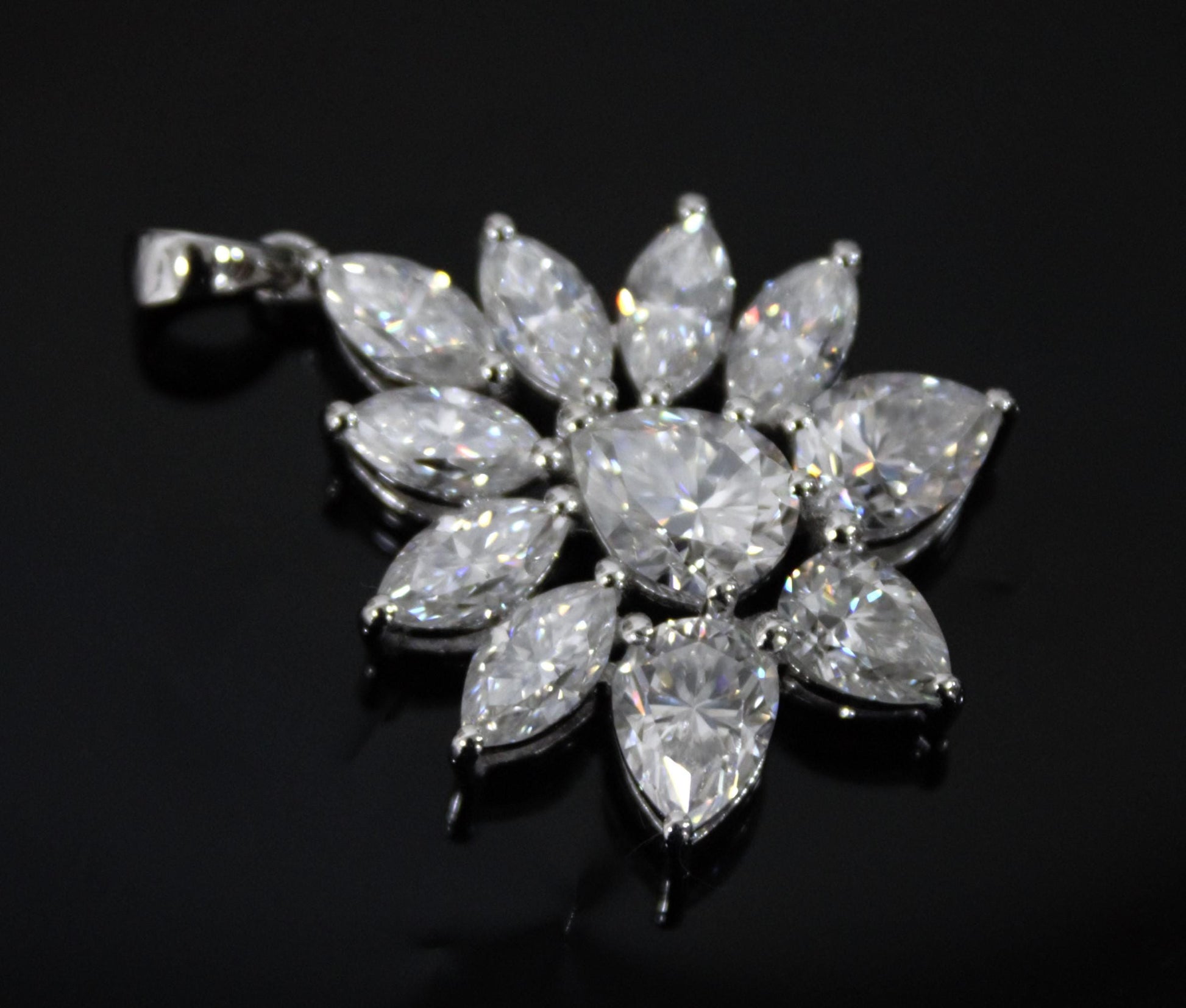 Solid 925 Sterling Silver Moissanite Pendant for Chain, Designer Jewelry for Her, Marquise and Pear Cut Stone Pendant Prefect Holiday Gift Product Details : ✥ Material ::- 925 Sterling Silver ✥ Gemstone ::- Moissanite ✥ Gross Weight ::- 5.619 Gm. (approx) ✥ Net Weight ::- 3.823 Gm. (approx) ✥ Stone Weight ::- 8.979 Ct. (approx) ✥ Stone Quantity ::- 11 ✥ Gemstone Shape ::- Marquise, Pear Customization:- We are able to make changes to this design according to your need or can make any other design you may desire, just send us photo of your favourite product and get it made in your desired materials. Care Instructions:- Wipe your jewelry with a soft cloth after every use Always store your jewelry in a flat box to avoid accidental scratches ✥✥✥✥✥✥Benefits Of Wearing Moissanite Gemstone✥✥✥✥✥✥ Moissanite a diamond alternative encourages you to set greater goals and accomplish success and recognition in your industry of choice. Your personality becomes more endearing, likeable, and magnificent. Also Moissanite is diamond tester positive. Moissanite is believed to be a stone of the future and can help those who want to manifest their dreams and desires. It is said to enhance intuition and creativity and can help you tap into your inner power and potential. If you have any questions or need more information, Please feel free to contact us. For more amazing designs visit our shop https://www.etsy.com/shop/Gemethysts