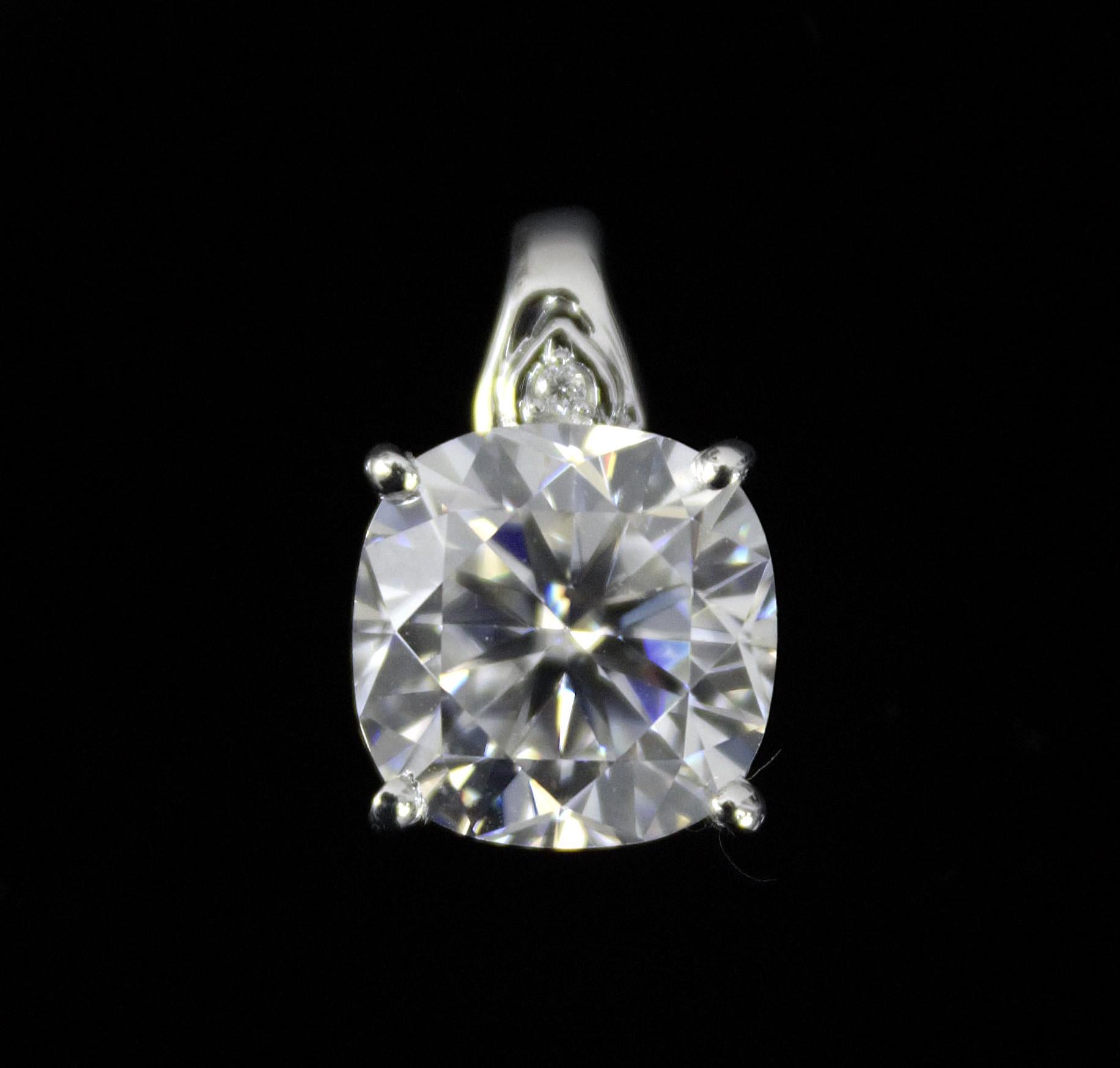 Solitaire Moissanite Prong Set Pendant, White Cushion Cut Moissanite Pendant, Gorgeous Women Charm Pendant, 925 Sterling Silver Jewelry Product Details : ✥ Material ::- 925 Sterling Silver ✥ Gemstone ::- Moissanite ✥ Gross Weight ::- 2.014 Gm. (Approx.) ✥ Net Weight ::- 1.958 Gm. (Approx.) ✥ Stone Weight ::- 4.591 Ct. (Approx.) ✥ Stone Quantity ::- 2 ✥ Gemstone Shape ::- Cushion Customization:- We are able to make changes to this design according to your need or can make any other design you may desire, just send us photo of your favorite product and get it made in your desired materials. Care Instructions:- Wipe your jewelry with a soft cloth after every use Always store your jewelry in a flat box to avoid accidental scratches ✥✥✥✥✥✥Benefits Of Wearing Moissanite Gemstone✥✥✥✥✥✥ Moissanite a diamond alternative encourages you to set greater goals and accomplish success and recognition in your industry of choice. Your personality becomes more endearing, likeable, and magnificent. Also Moissanite is diamond tester positive. Moissanite is believed to be a stone of the future and can help those who want to manifest their dreams and desires. It is said to enhance intuition and creativity and can help you tap into your inner power and potential. If you have any questions or need more information, Please feel free to contact us. For more amazing designs visit our shop https://www.etsy.com/shop/Gemethysts