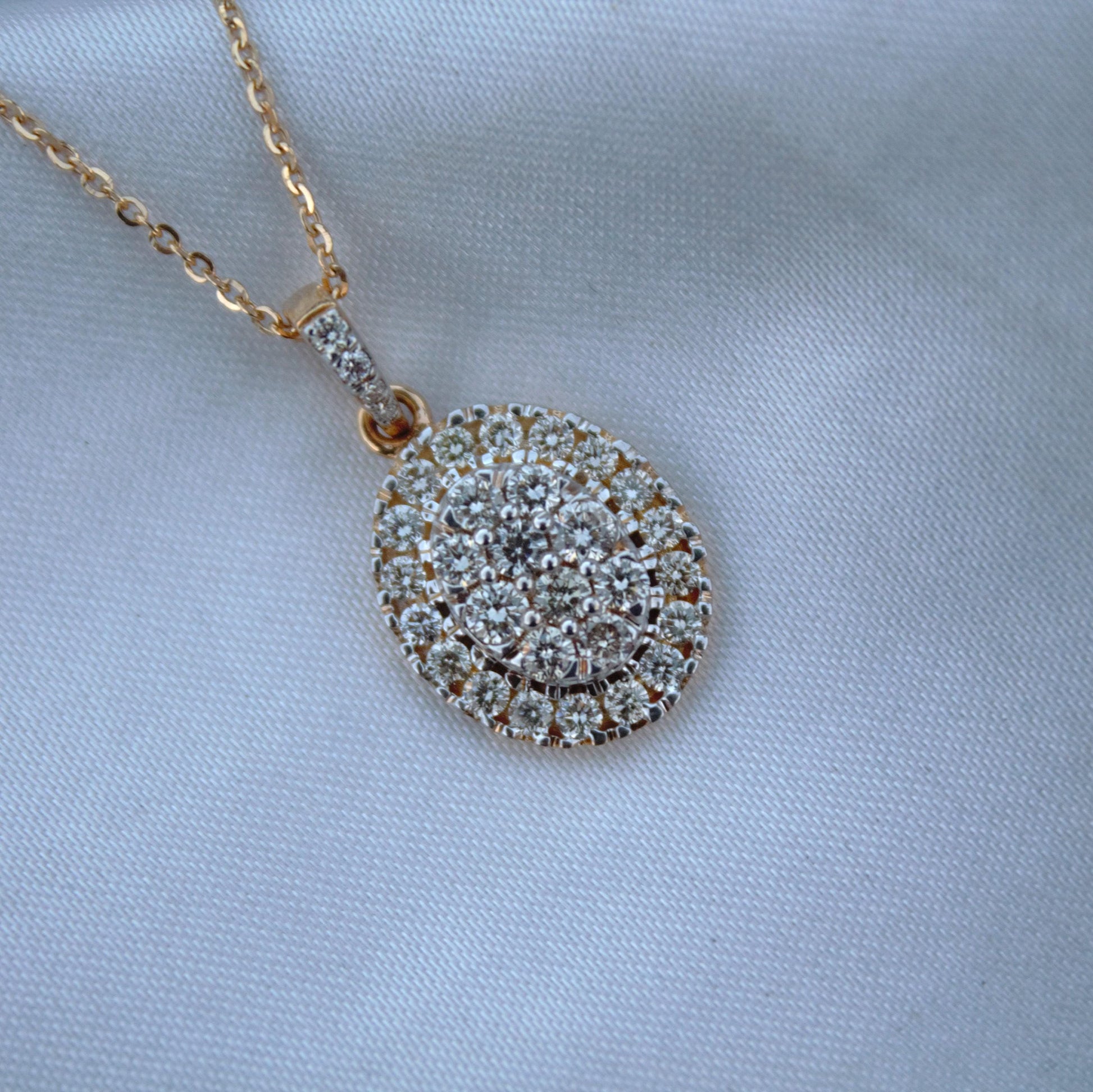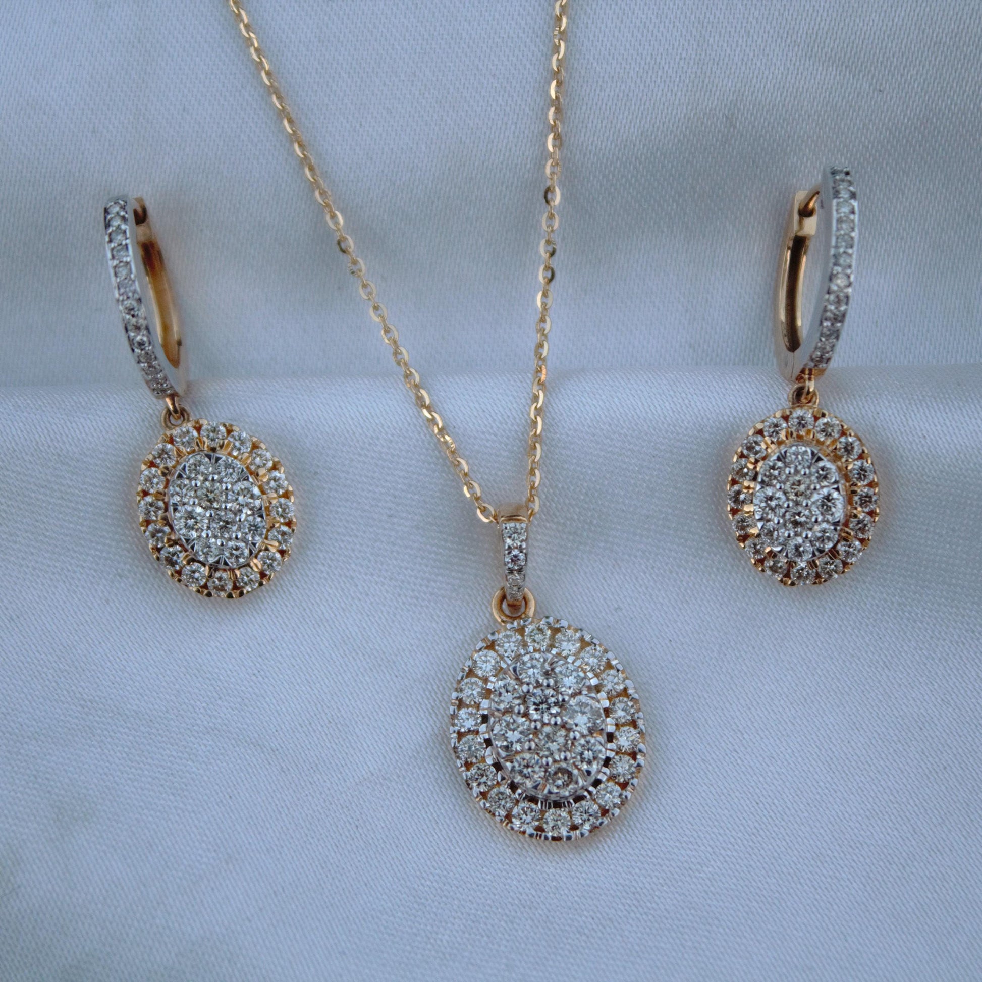 Statement Solid18k Yellow Gold Diamond Jewelry Set, Natural Diamonds Pendant Necklace with Hoop Dangle Earrings, Dainty Elegant Gold Jewelry IGI Certified Real Diamond Gold Jewelry. Product Details- Necklace Details : Gold Purity : 18K Gold Gross Weight : 3.87 grams Net Weight : 3.692 grams Diamond Weight : 0.89 carat Diamond Color : H - I Diamond Clarity : SI IGI Report : 73J149802412 IGI Certificate Report Link : https://www.igi.org/verify-your-report/?r=73J149802412 Earrings Details : Gold Purity : 18K Gold Gross Weight : 4.87 grams Net Weight : 4.65 grams Diamond Weight : 1.10 carat Diamond Color : H - I Diamond Clarity : SI IGI Report : 73J149812412 IGI Certificate Report Link : https://www.igi.org/verify-your-report/?r=73J149812412 About Diamond :- The history of diamonds is a tale that spans millennia and continents. Diamonds were first discovered in India, where they were revered for their extraordinary beauty and symbolism. Ancient Indian texts, dating back to at least the 4th century BC, mention diamonds as "Vajra," a term signifying both thunderbolts and diamonds, highlighting their indestructibility. Natural Diamond, is one of such sparkling gemstones with various benefits. Real Heera symbolizes true undying love. Physically it is considered unbreakable. On the chemical ground, Diamond is said to be the strongest mineral present on the planet Earth. It is a naturally occurring material produced by components of carbon. Clear colorless diamonds are though quite rare and uncommon; diamonds with a tint of yellow and brown colors are most easily found. Real Diamond, popularly renowned as Heera in Hindi, is one of the nine gemstones on the list of Navratna gemstones. It is undeniably the first love of any woman. Customization:- We are able to make changes to this design according to your need or can make any other design you may desire, just send us photo of your favorite product and get it made in your desired materials. Care Instructions:- Wipe your jewelry with a soft cloth after every use Always store your jewelry in a flat box to avoid accidental scratches For more amazing designs visit our shop https://www.etsy.com/shop/Gemethysts