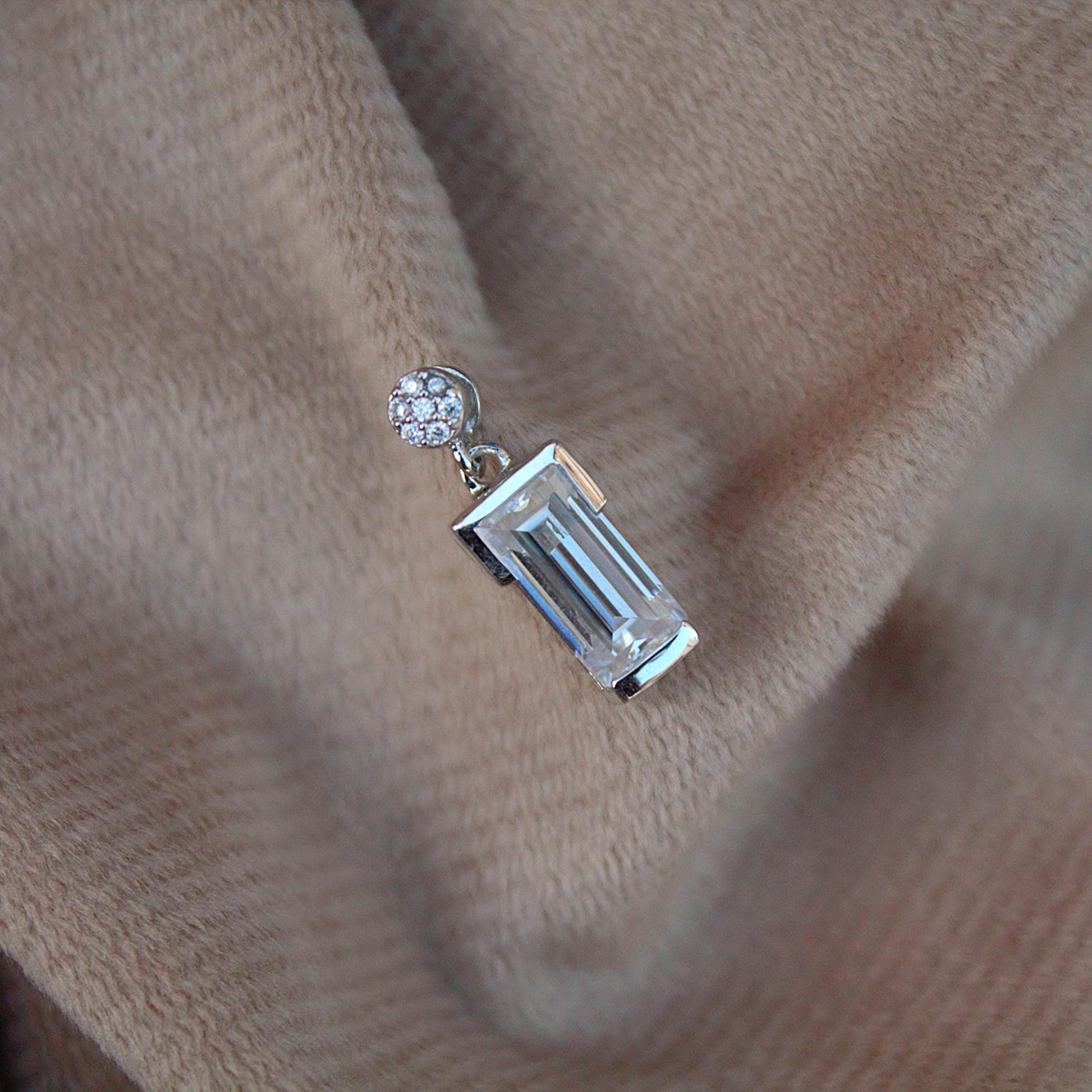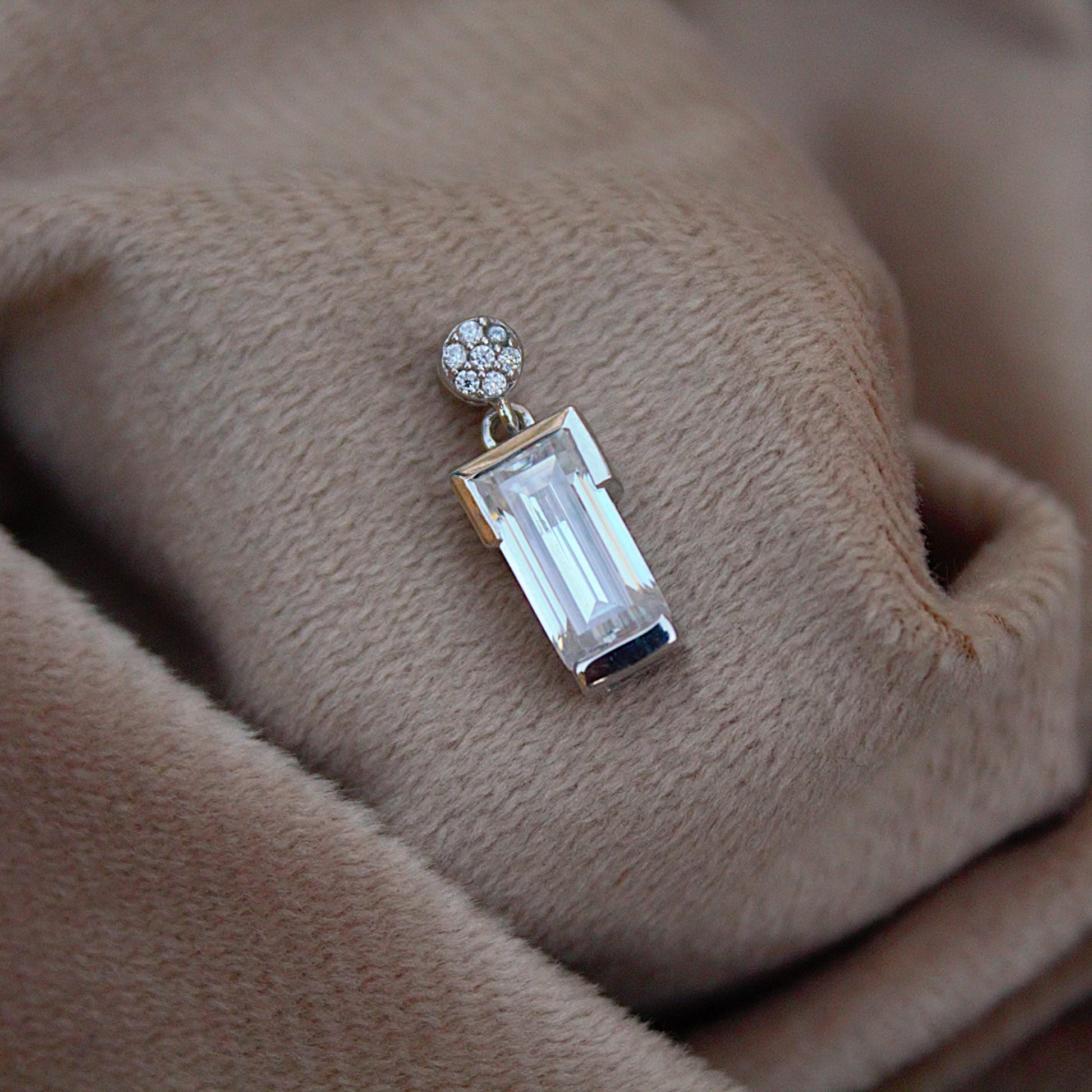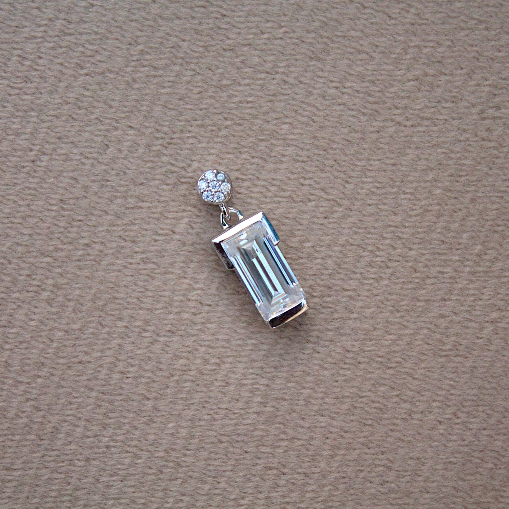 Sterling Silver Moissanite Baguette Pendant, Brilliant Cut Silver Jewelry, Minimalist Moissanite Pendant – 925 Sterling Silver Charm Gift