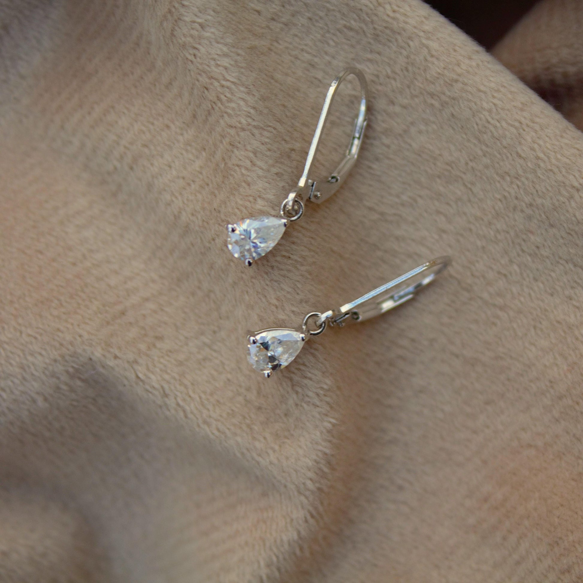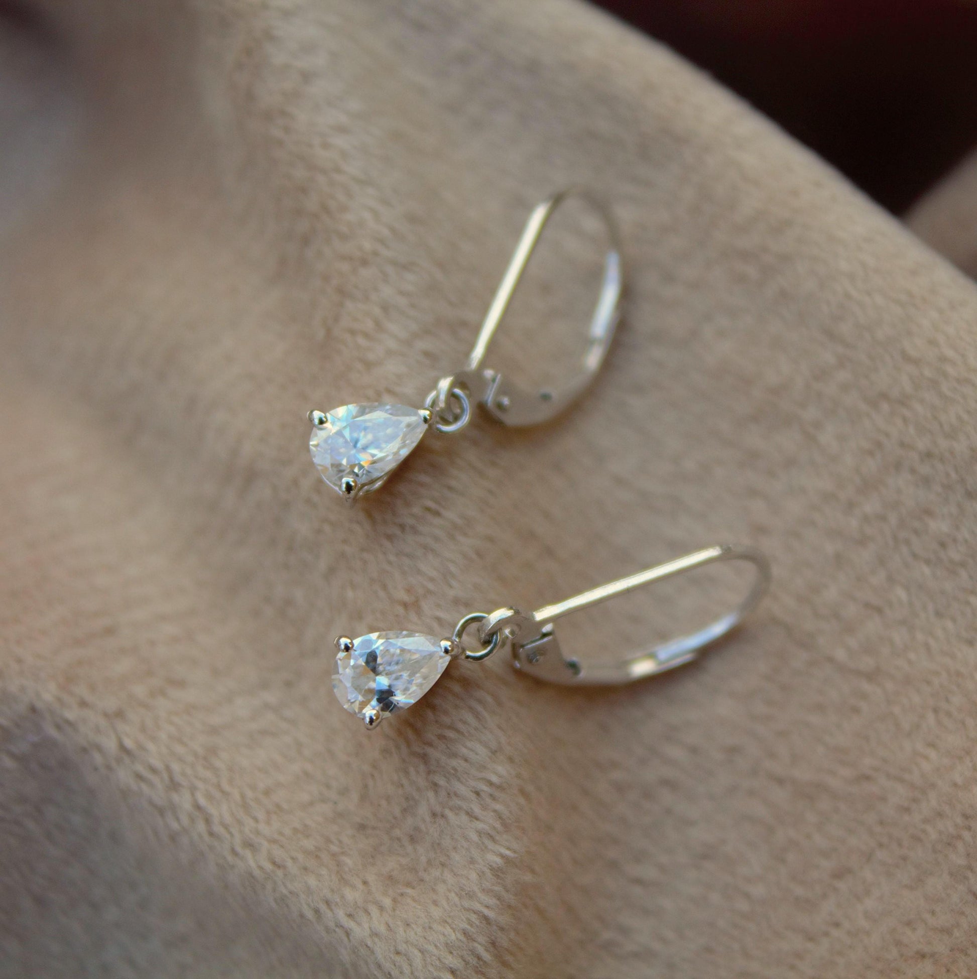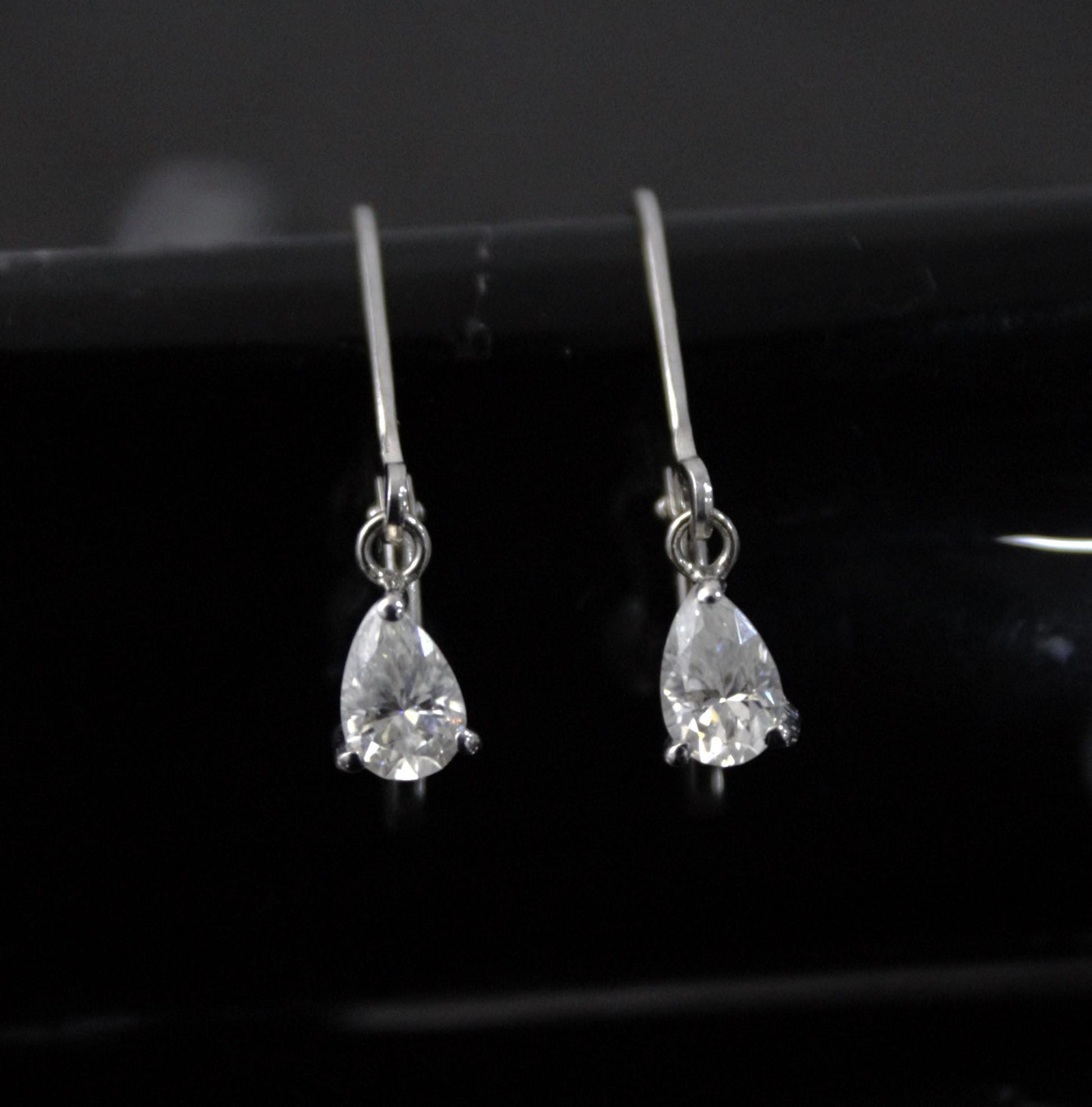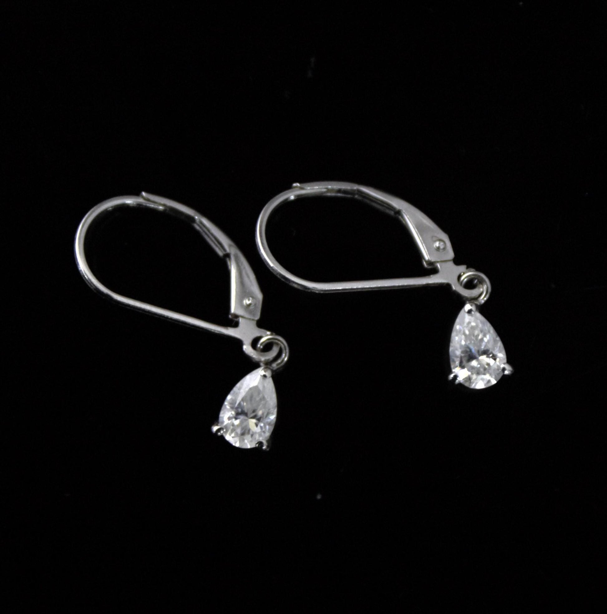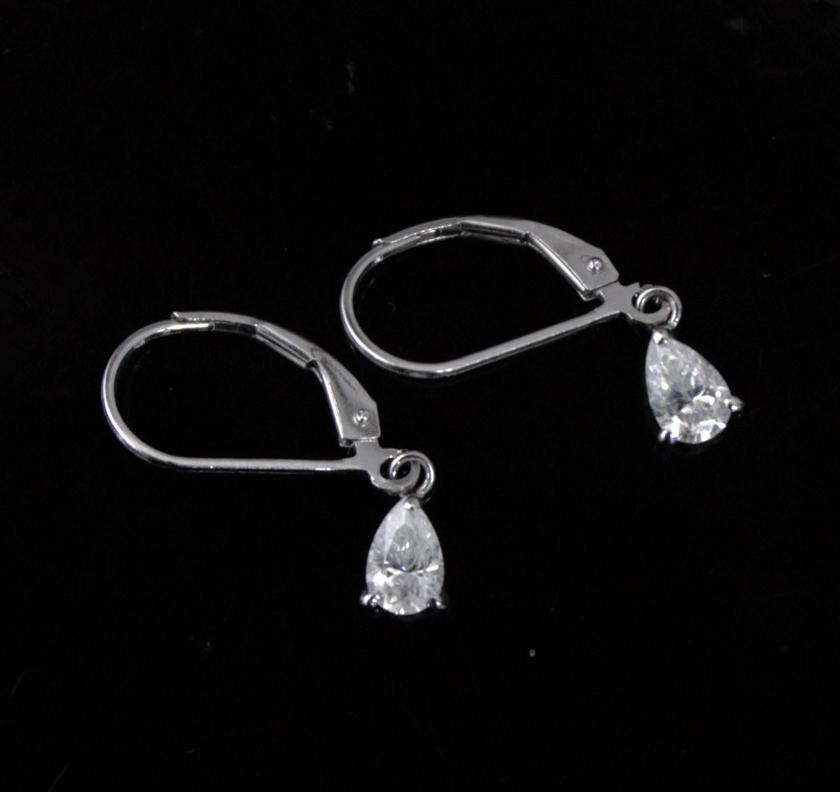 Sterling Silver Moissanite Stone Lever Back Earrings, 925 Silver Drop Earrings for Her, Pear Cut Stone Earrings, Handmade Vintage Earrings