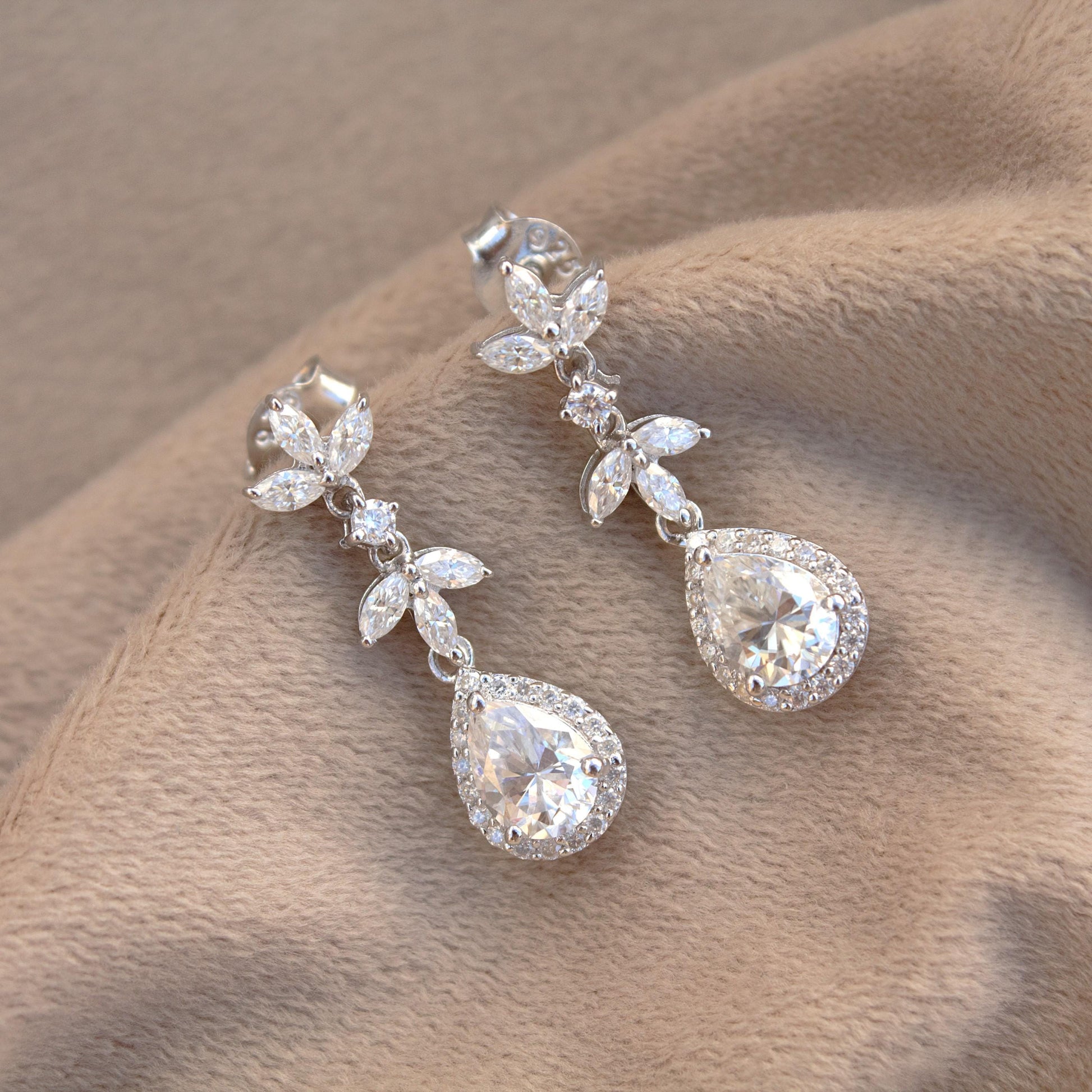 Teardrop Moissanite Earrings in 925 Sterling Silver, Drop and Dangle Earrings, Designer Statement Earrings for Women, Prefect Gift for Bride