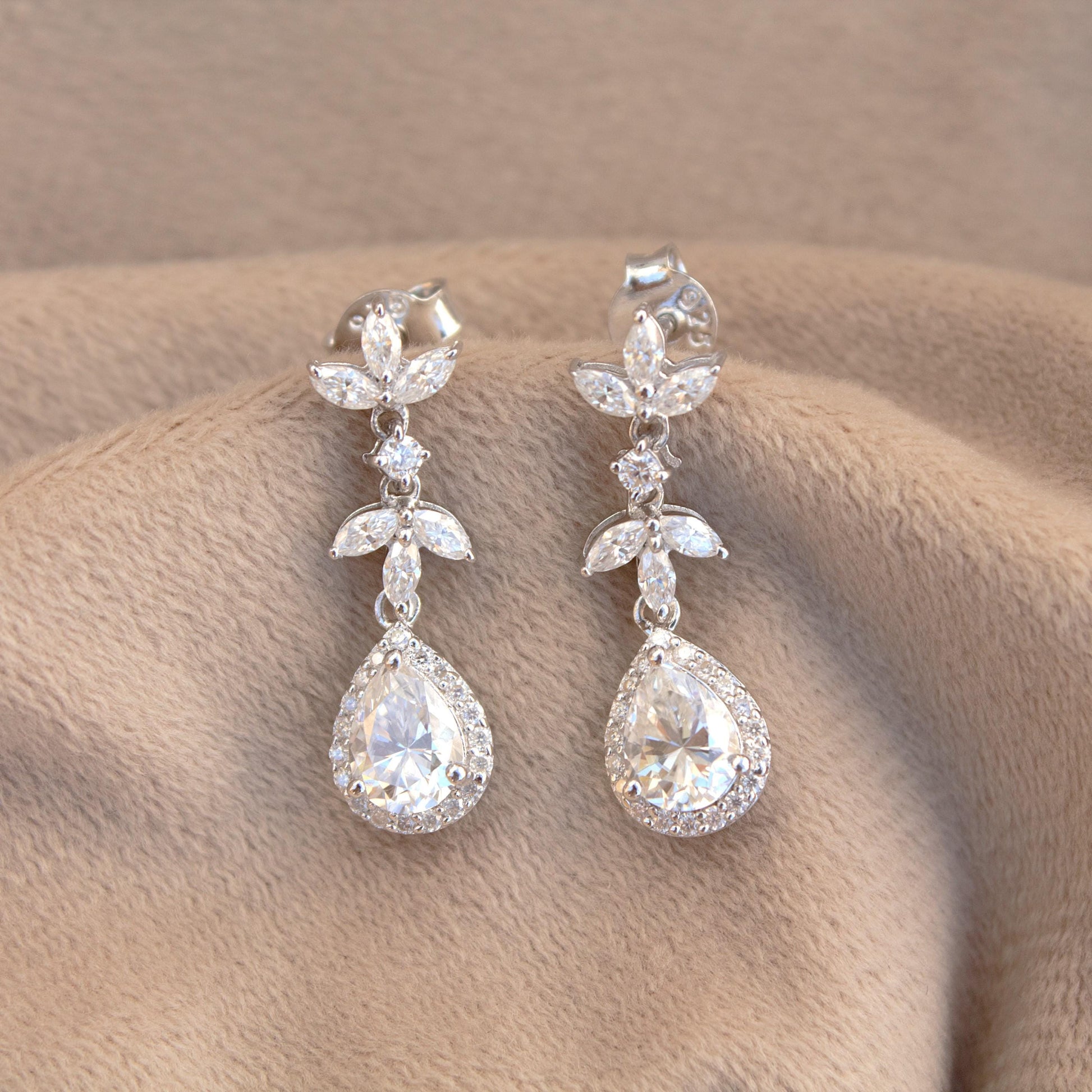 Teardrop Moissanite Earrings in 925 Sterling Silver, Drop and Dangle Earrings, Designer Statement Earrings for Women, Prefect Gift for Bride Product Details : ✥ Material ::- 925 Sterling Silver ✥ Gemstone ::- Moissanite ✥ Gross Weight ::- 4.252 Gm. (approx) ✥ Net Weight ::- 3.564 Gm. (approx) ✥ Stone Weight ::- 3.438 Ct. (approx) ✥ Stone Quantity ::- 52 ✥ Gemstone Shape ::- Pear , Round Customization:- We are able to make changes to this design according to your need or can make any other design you may desire, just send us photo of your favourite product and get it made in your desired materials. Care Instructions:- Wipe your jewelry with a soft cloth after every use Always store your jewelry in a flat box to avoid accidental scratches Benefits Of Wearing Moissanite Gemstone : Moissanite a diamond alternative encourages you to set greater goals and accomplish success and recognition in your industry of choice. Your personality becomes more endearing, likeable, and magnificent. Also Moissanite is diamond tester positive. Moissanite is believed to be a stone of the future and can help those who want to manifest their dreams and desires. It is said to enhance intuition and creativity and can help you tap into your inner power and potential. If you have any questions or need more information, Please feel free to contact us. For more amazing designs visit our shop https://www.etsy.com/shop/Gemethysts