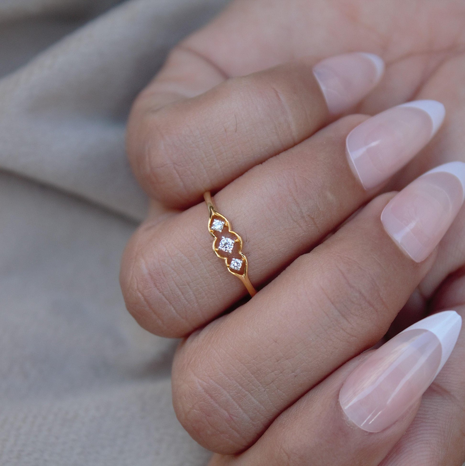 Three Stone Diamond Ring, 1.43 Gm Diamond Gold Ring, 18K Dainty Yellow Gold Jewelry, IGI Certified Natural Diamond Gold Ring Gift for Wife IGI Certified Real Diamond Gold Jewelry. Product Details- Ring Details : Gold Purity : 18K Gold Gross Weight : 1.43 grams Net Weight : 1.418 grams Ring Size : 5.25 US Diamond Weight : 0.06 carat Total Diamonds : 3 Diamond Color : G - H Diamond Clarity : SI IGI Report : 73J033952412 IGI Certificate Report Link : https://www.igi.org/verify-your-report/?r=73J033952412 About Diamond :- The history of diamonds is a tale that spans millennia and continents. Diamonds were first discovered in India, where they were revered for their extraordinary beauty and symbolism. Ancient Indian texts, dating back to at least the 4th century BC, mention diamonds as "Vajra," a term signifying both thunderbolts and diamonds, highlighting their indestructibility. Natural Diamond, is one of such sparkling gemstones with various benefits. Real Heera symbolizes true undying love. Physically it is considered unbreakable. On the chemical ground, Diamond is said to be the strongest mineral present on the planet Earth. It is a naturally occurring material produced by components of carbon. Clear colorless diamonds are though quite rare and uncommon; diamonds with a tint of yellow and brown colors are most easily found. Real Diamond, popularly renowned as Heera in Hindi, is one of the nine gemstones on the list of Navratna gemstones. It is undeniably the first love of any woman. Customization:- We are able to make changes to this design according to your need or can make any other design you may desire, just send us photo of your favorite product and get it made in your desired materials. Care Instructions:- Wipe your jewelry with a soft cloth after every use Always store your jewelry in a flat box to avoid accidental scratches For more amazing designs visit our shop https://www.etsy.com/shop/Gemethysts