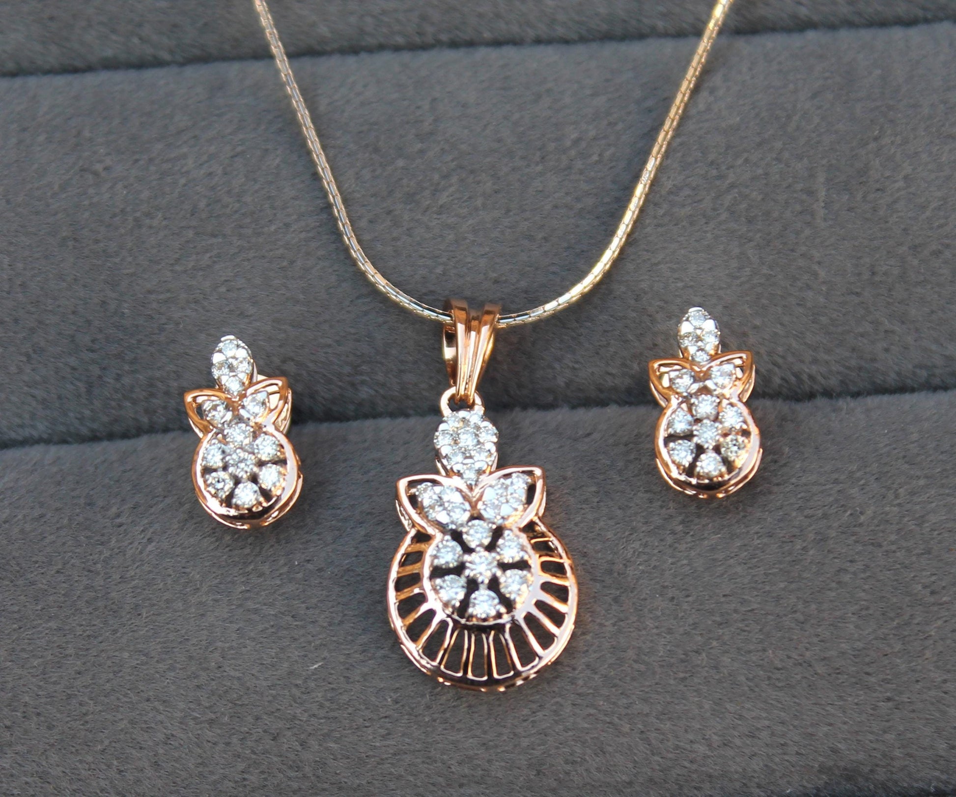 VS-SI Certified Natural Diamonds, 18K Gold Diamond Jewelry Set, Designer Pendant with Chain for Bride, Necklace Earrings Combo Set