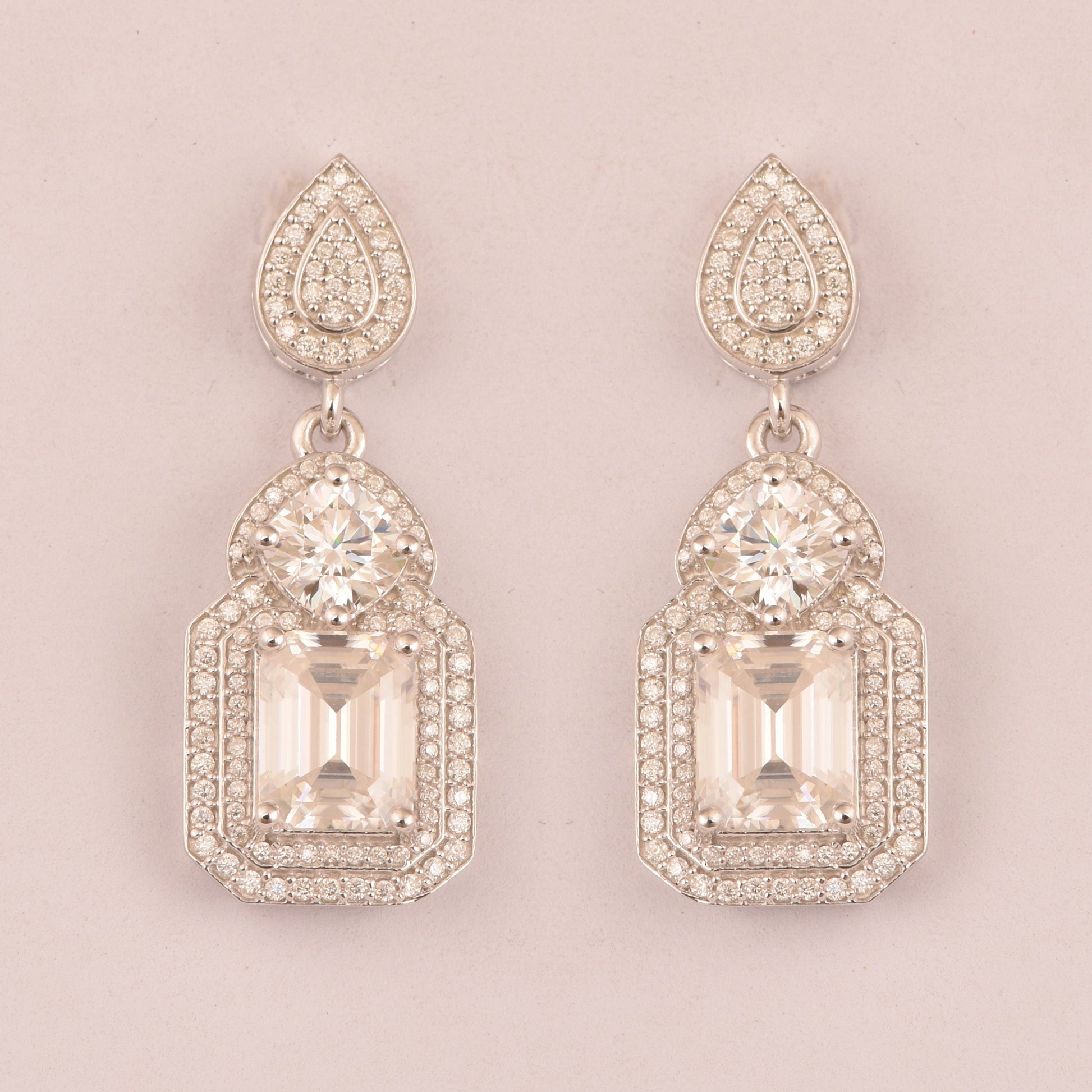 White Gold Earrings, 14K, 18K Gold Earrings, Lab Grown Diamond Earrings, Designer Jewelry for Her, Victorian Earrings, Anniversary Gift Product Details :- ✥ 𝐂𝐞𝐧𝐭𝐞𝐫 𝐒𝐭𝐨𝐧𝐞 𝐃𝐞𝐭𝐚𝐢𝐥𝐬 ⁂ Gemstone: Lab Diamond (CVD) ⁂ Gemstone Shape : Octagon ⁂ Color/Clarity : FG Color VVS/ VS grade ⁂ Gemstone Size : 9 X 7 MM ⁂ Carat Weight : 2.5 ct.(approx) ✥ 𝐒𝐢𝐝𝐞 𝐒𝐭𝐨𝐧𝐞 𝐃𝐞𝐭𝐚𝐢𝐥𝐬 ⁂ Gemstone : Lab Diamond (HPHT) ⁂ Gemstone Shape : Cushion ⁂ Color/Clarity : FG Color VVS/ VS grade ⁂ Gemstone Size : 6 MM ⁂ Carat Weight : 1 ct.(approx) ✥ 𝐒𝐢𝐝𝐞 𝐒𝐭𝐨𝐧𝐞 𝐃𝐞𝐭𝐚𝐢𝐥𝐬 ⁂ Gemstone Shape : Round ⁂ Color/Clarity : FG Color VVS/ VS grade ⁂ Gemstone Size : 0.8 MM ,1 MM ✥ 𝐄𝐚𝐫𝐫𝐢𝐧𝐠𝐬 𝐃𝐞𝐭𝐚𝐢𝐥𝐬 ⁂ Metal Purity : Gold (10K, 14K, 18K) ⁂ Metal Tone : Yellow, White, Rose Gold ⁂ Stamped : Yes ⁂ Closure : Push Back Customization:- We are able to make changes to this design according to your need or can make any other design you may desire, just send us photo of your favourite product and get it made in your desired materials. Care Instructions:- Wipe your jewelry with a soft cloth after every use Always store your jewelry in a flat box to avoid accidental scratches About Lab Diamond:- Lab-grown diamonds share the same physical, chemical, and optical properties as mined diamonds. Their matching brilliance and sparkle make their appearance indistinguishable from diamonds sourced from the Earth. These gems are created in controlled, humane conditions. This eliminates concerns about 'blood diamonds' or worker exploitation that can occur in diamond mining. Lab-grown diamonds shine brightly as an excellent choice for your jewelry. These ethical diamonds offer the identical aesthetic of mined diamonds, with the added benefits of sustainability, affordability, and higher quality. If you have any questions or need more information, Please feel free to contact us. For more amazing designs visit our shop https://www.etsy.com/shop/Gemethysts