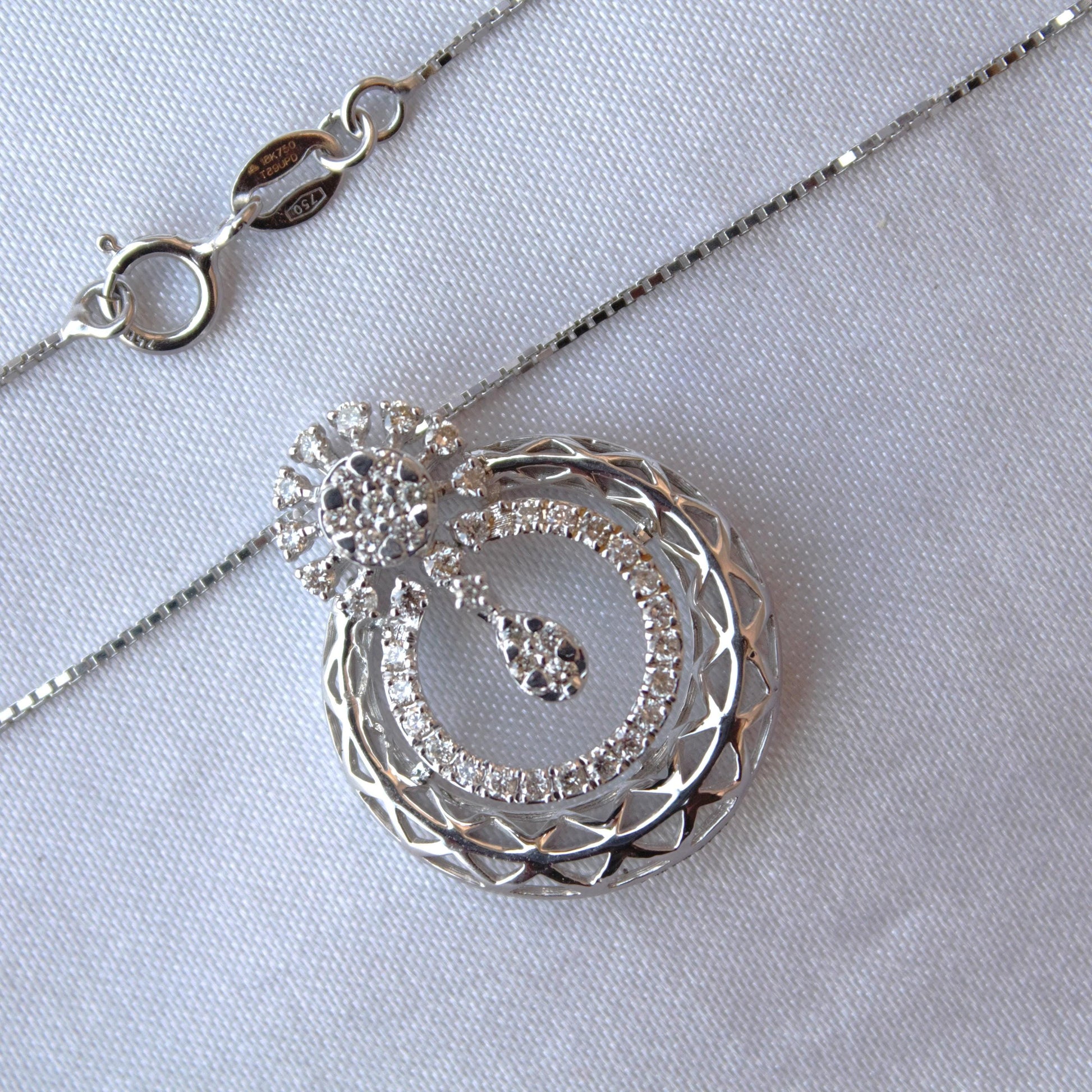 White Gold Pendant with Stud Earrings Set, 18k Gold Diamond Jewelry Set, Handmade Vintage Jewelry Set, Designer Statement Certified Jewelry