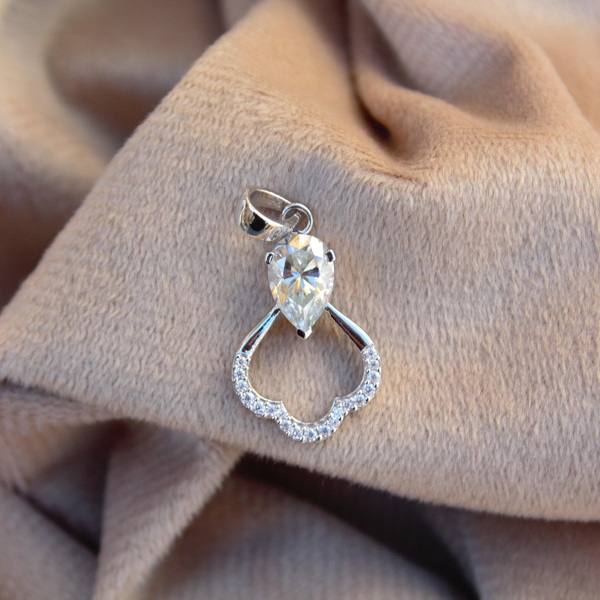 White Moissanite Pendant in 925 Sterling Silver, Designer Silver Pendant for Chain, White Stone Dainty Pendant, Silver Charm Pendant Jewelry Product Details : ✥ Material ::- 925 Sterling Silver ✥ Gemstone ::- Moissanite ✥ Gross Weight ::- 1.612 Gm.(approx) ✥ Net Weight ::- 1.297 Gm.(approx) ✥ Stone Weight ::- 1.572 Ct.(approx) ✥ Stone Quantity ::- 20 ✥ Gemstone Shape ::- Pear, Round Customization:- We are able to make changes to this design according to your need or can make any other design you may desire, just send us photo of your favorite product and get it made in your desired materials. Care Instructions:- Wipe your jewelry with a soft cloth after every use Always store your jewelry in a flat box to avoid accidental scratches Benefits Of Wearing Moissanite Gemstone Moissanite a diamond alternative encourages you to set greater goals and accomplish success and recognition in your industry of choice. Your personality becomes more endearing, likeable, and magnificent. Also Moissanite is diamond tester positive. Moissanite is believed to be a stone of the future and can help those who want to manifest their dreams and desires. It is said to enhance intuition and creativity and can help you tap into your inner power and potential. If you have any questions or need more information, Please feel free to contact us. For more amazing designs visit our shop https://www.etsy.com/shop/Gemethysts