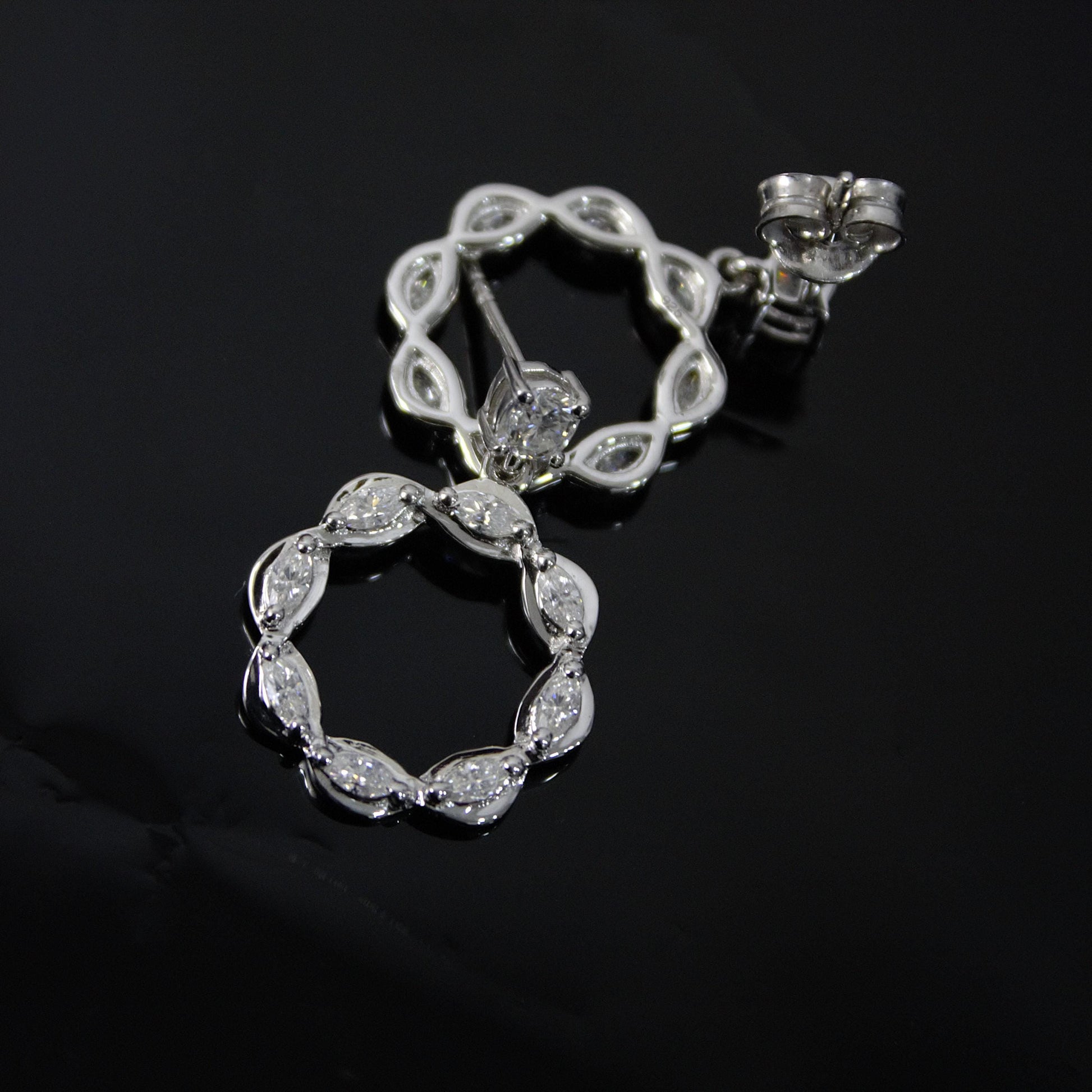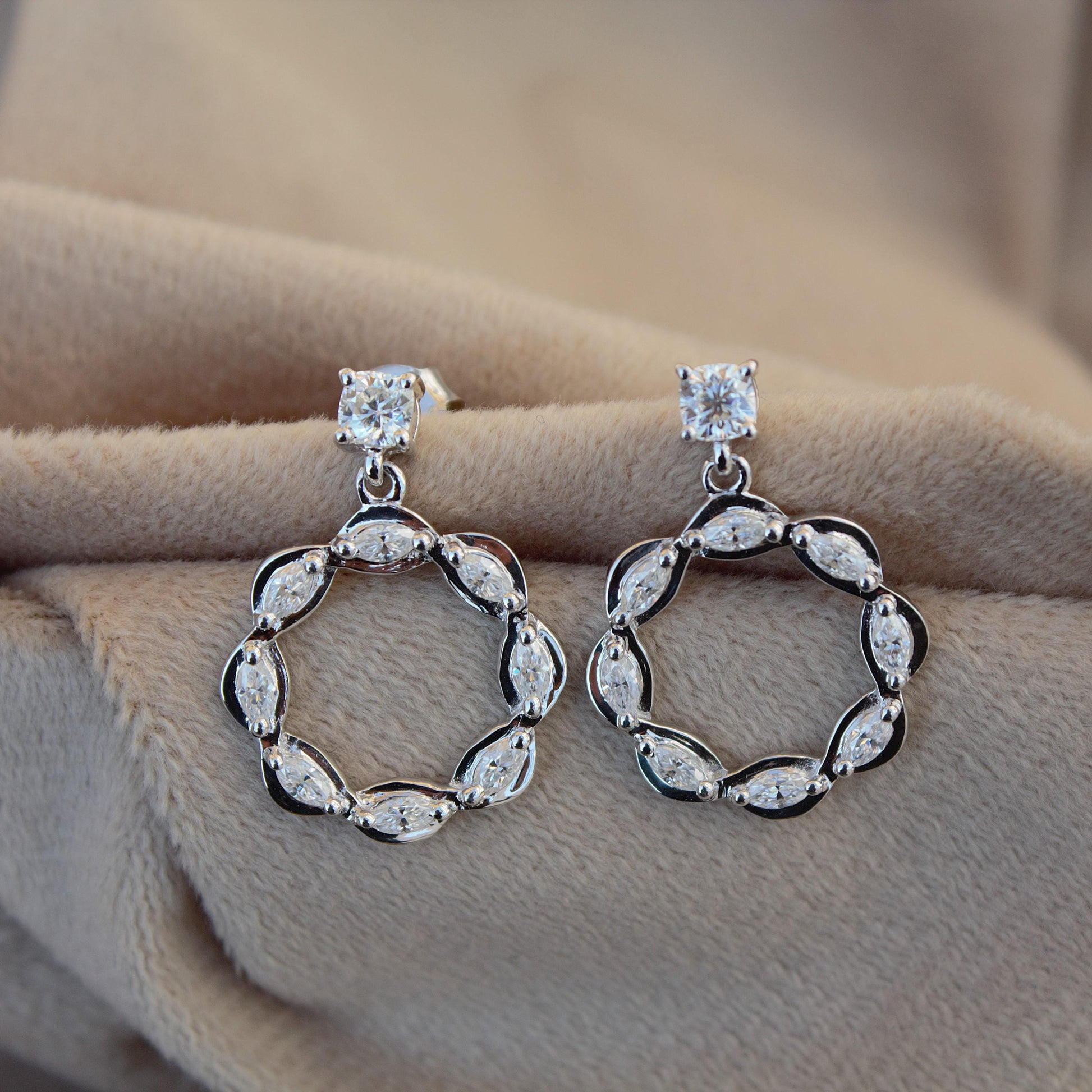 White Moissanite Stud Hoop Earrings, 925 Sterling Silver Hoop Earrings for Women, Statement Moissanite Jewelry, Anniversary Gift for Wife Product Details : ✥ Material ::- 925 Sterling Silver ✥ Gemstone ::- Moissanite ✥ Gross Weight ::- 4.858 Gm. (Approx) ✥ Net Weight ::- 4.526 Gm. (Approx) ✥ Stone Weight ::- 1.658 Ct. (Approx) ✥ Stone Quantity ::- 18 ✥ Gemstone Shape ::- Marquise, Square Customization:- We are able to make changes to this design according to your need or can make any other design you may desire, just send us photo of your favourite product and get it made in your desired materials. Care Instructions:- Wipe your jewelry with a soft cloth after every use Always store your jewelry in a flat box to avoid accidental scratches Benefits Of Wearing Moissanite Gemstone :- Moissanite a diamond alternative encourages you to set greater goals and accomplish success and recognition in your industry of choice. Your personality becomes more endearing, likeable, and magnificent. Also Moissanite is diamond tester positive. Moissanite is believed to be a stone of the future and can help those who want to manifest their dreams and desires. It is said to enhance intuition and creativity and can help you tap into your inner power and potential. If you have any questions or need more information, Please feel free to contact us. For more amazing designs visit our shop https://www.etsy.com/shop/Gemethysts